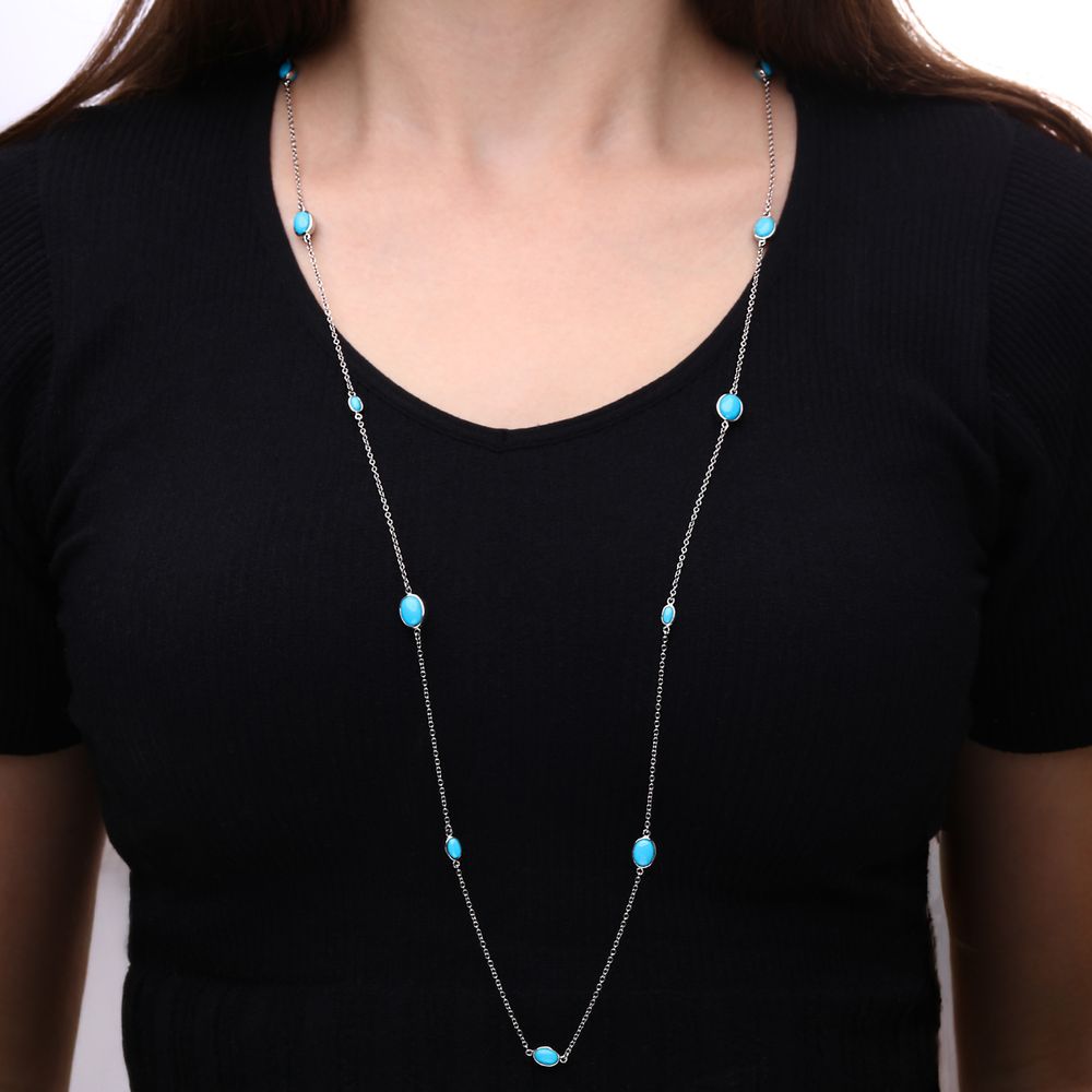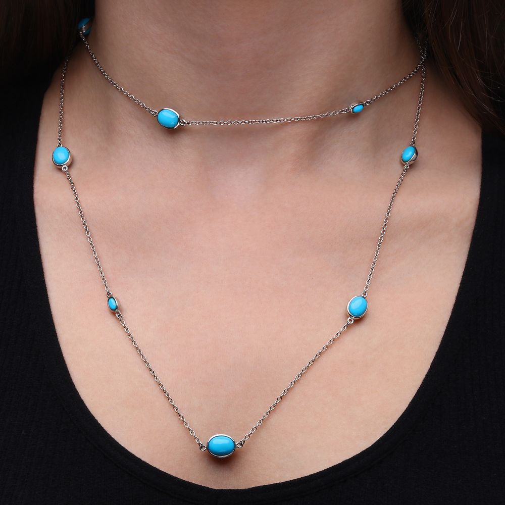 Colar com 12 Turquesas Ovais Sleeping Beauty Prata