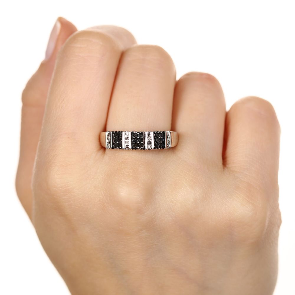 Meia Aliança de Prata com Diamantes Negros e Brancos
