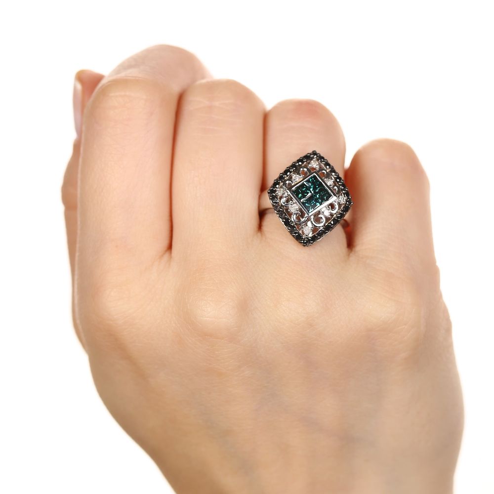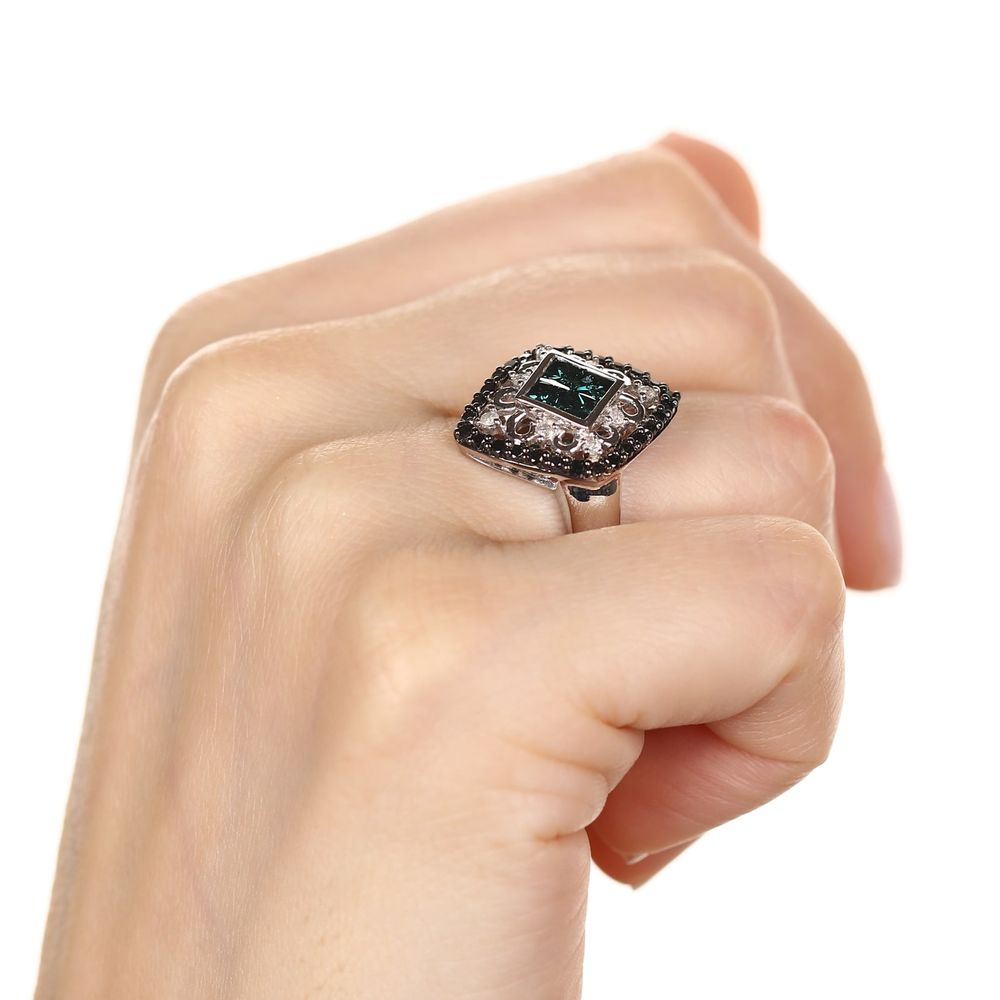 Anel de Prata com Diamantes Azuis, Negros e Brancos