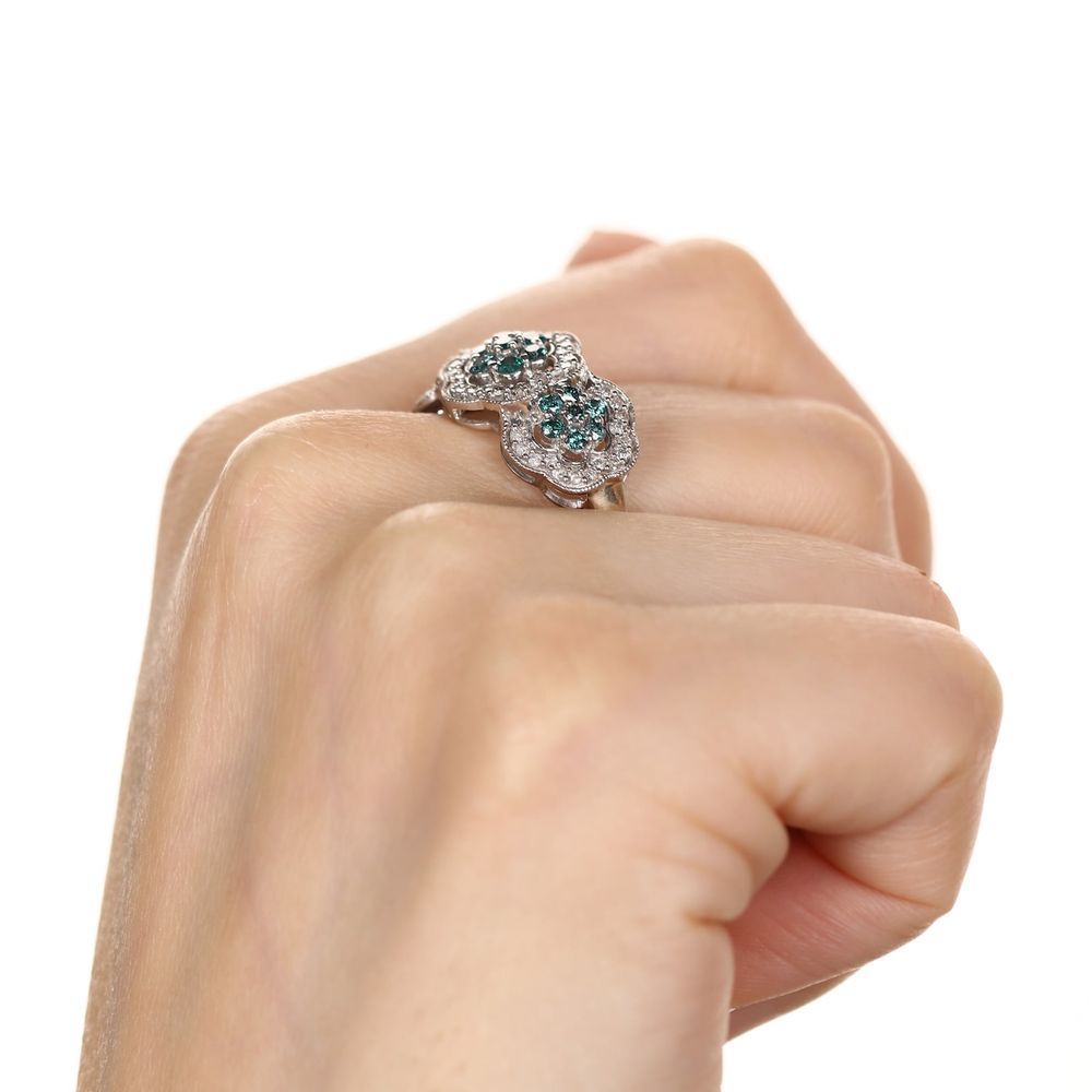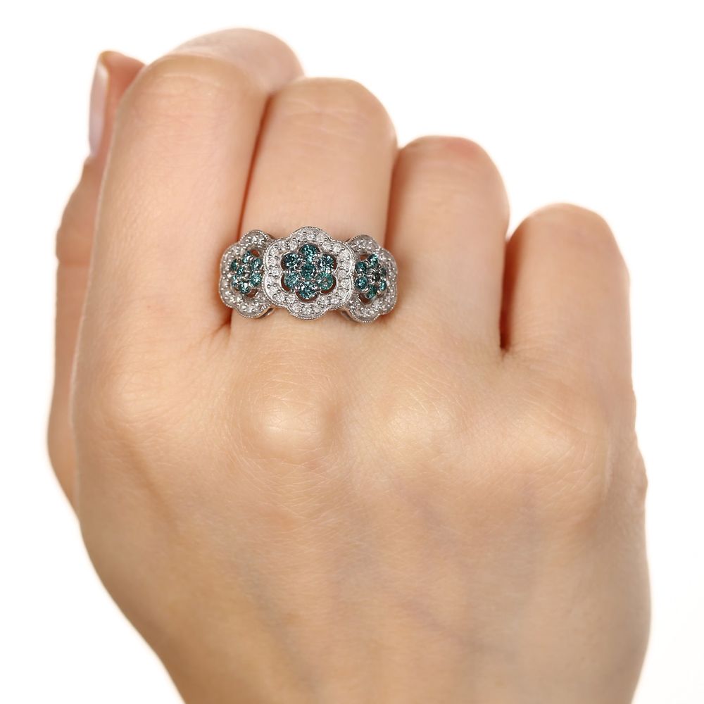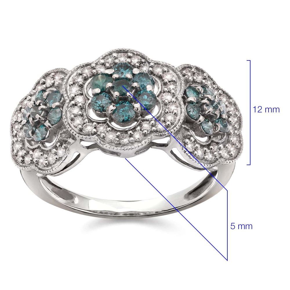 Anel de Prata Florzinhas com Diamantes Azuis e Brancos