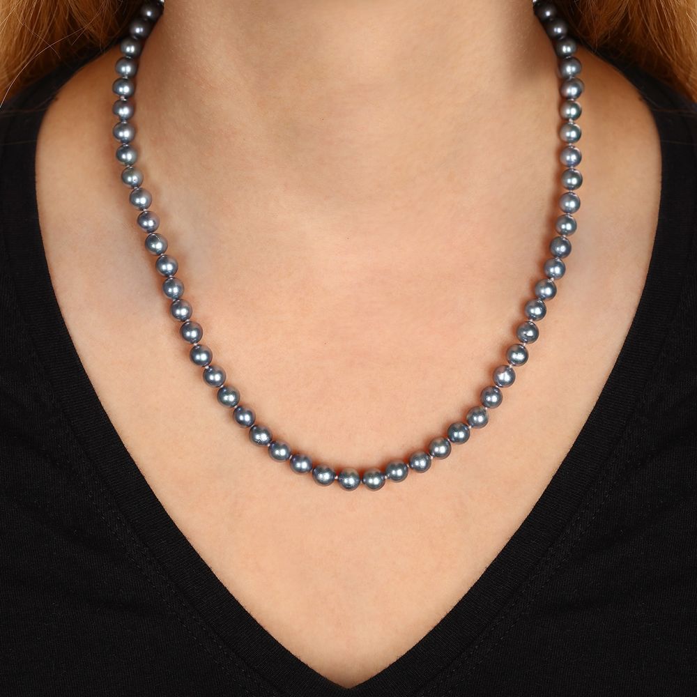 Colar em Ouro Branco de Pérolas Akoya Cinza