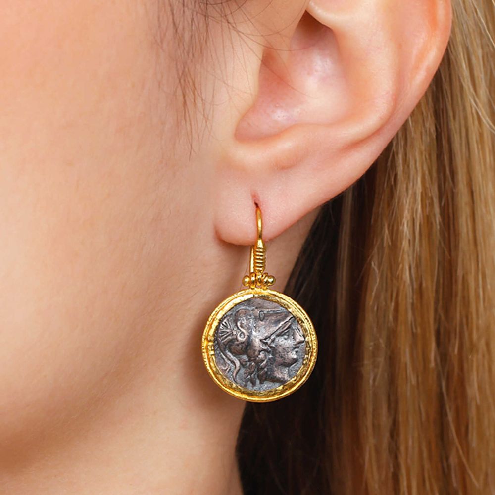 O brinco é uma moeda antiga trabalhado em prata e ouro 23,64K!