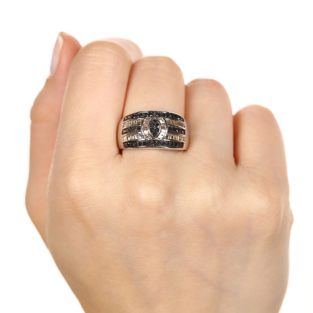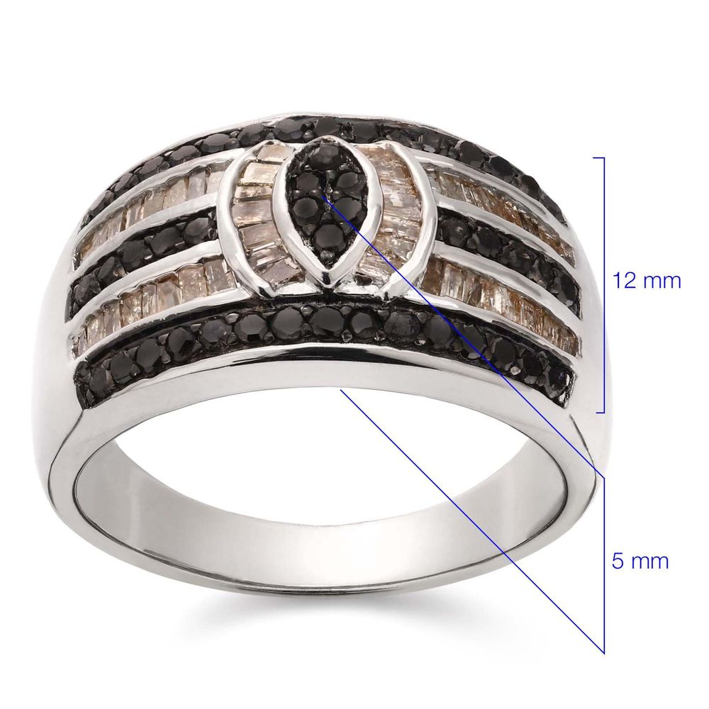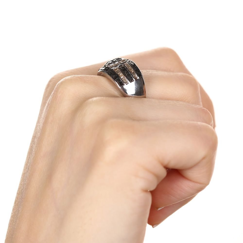 Anel de Prata com Diamantes Negros e Champagnes