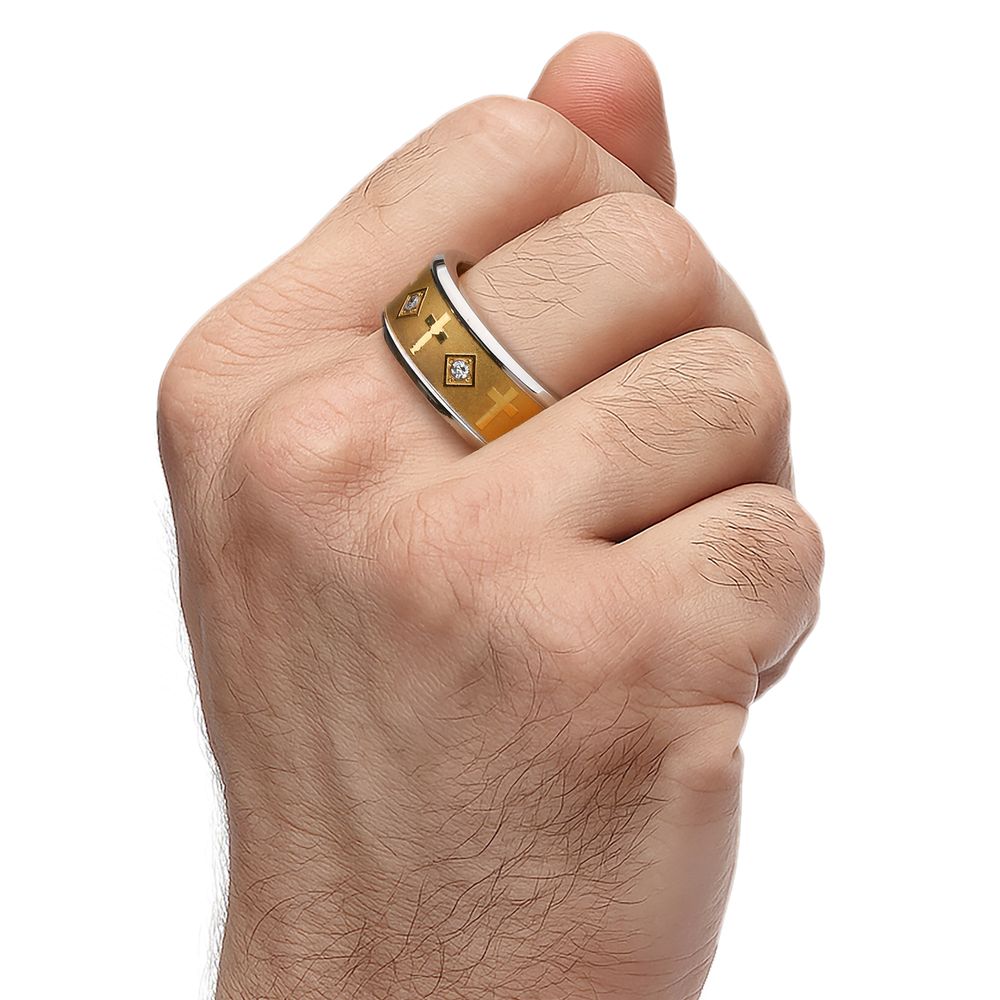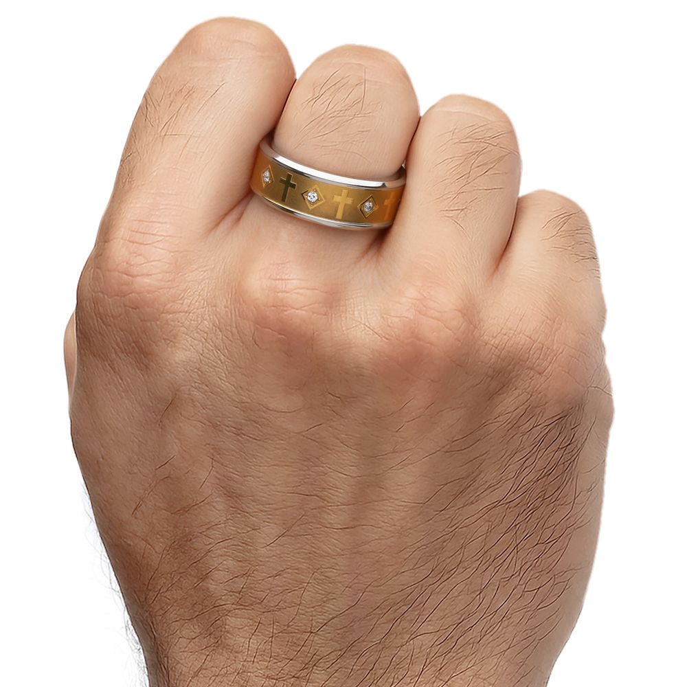 Anel Cruz com Zircônias em Aço Inoxidável