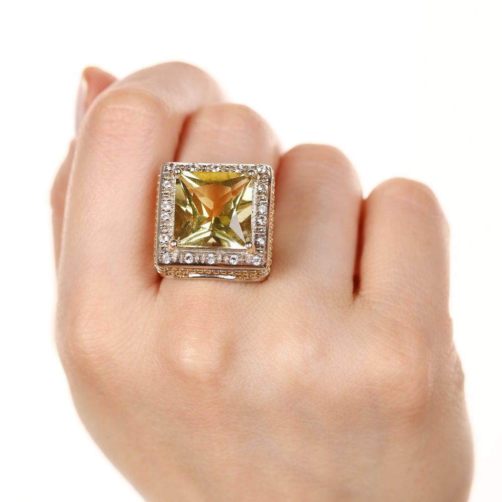 Anel em Prata 925 com Quartzo Limão e Topázios
