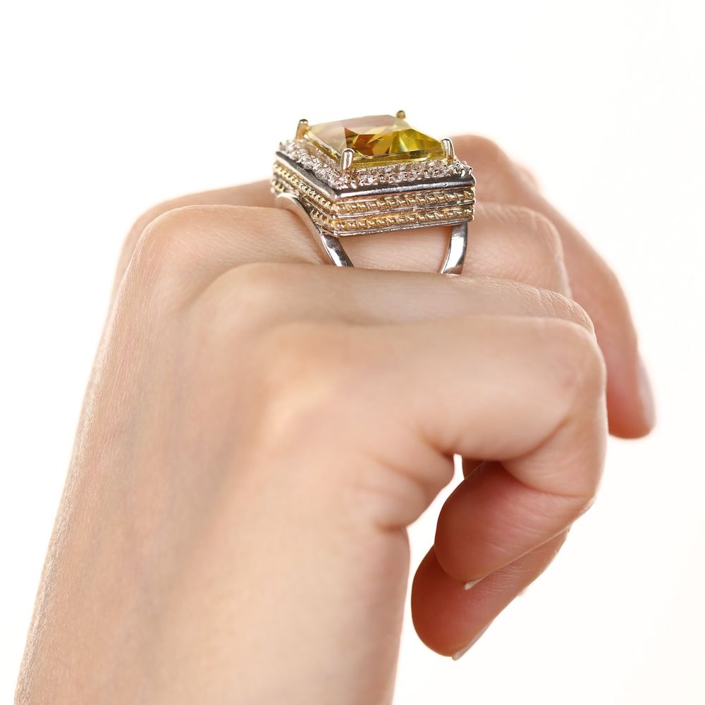 Em pedras: Quartzo Limão (11,5 cts) e Topázios (75 pts)