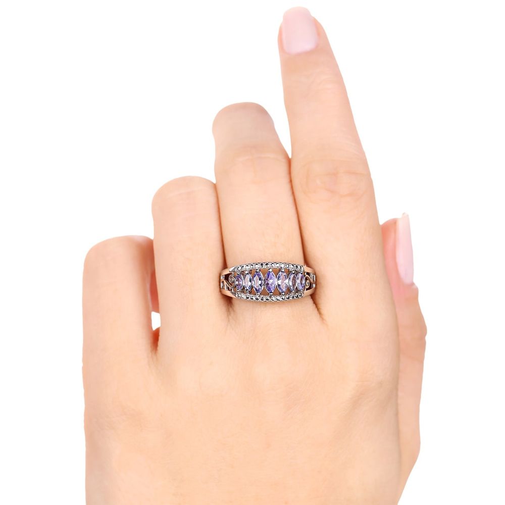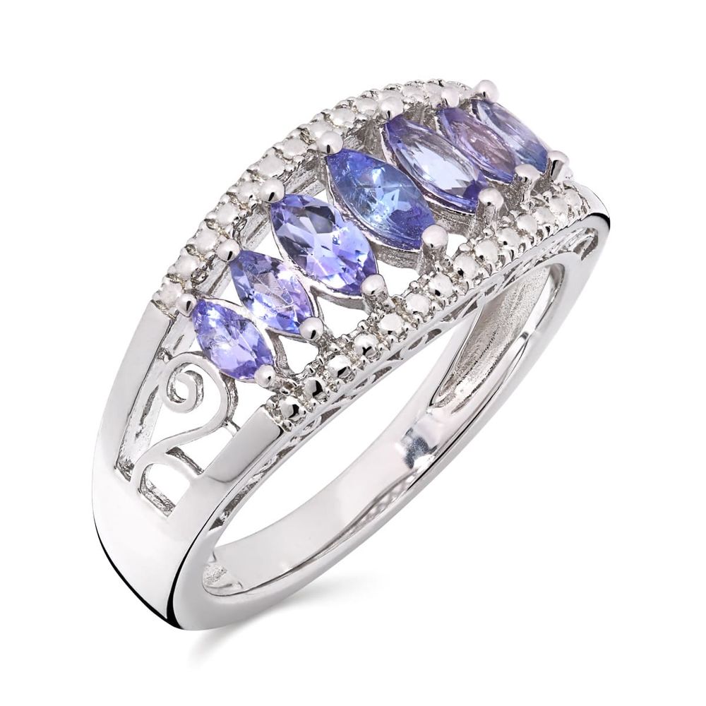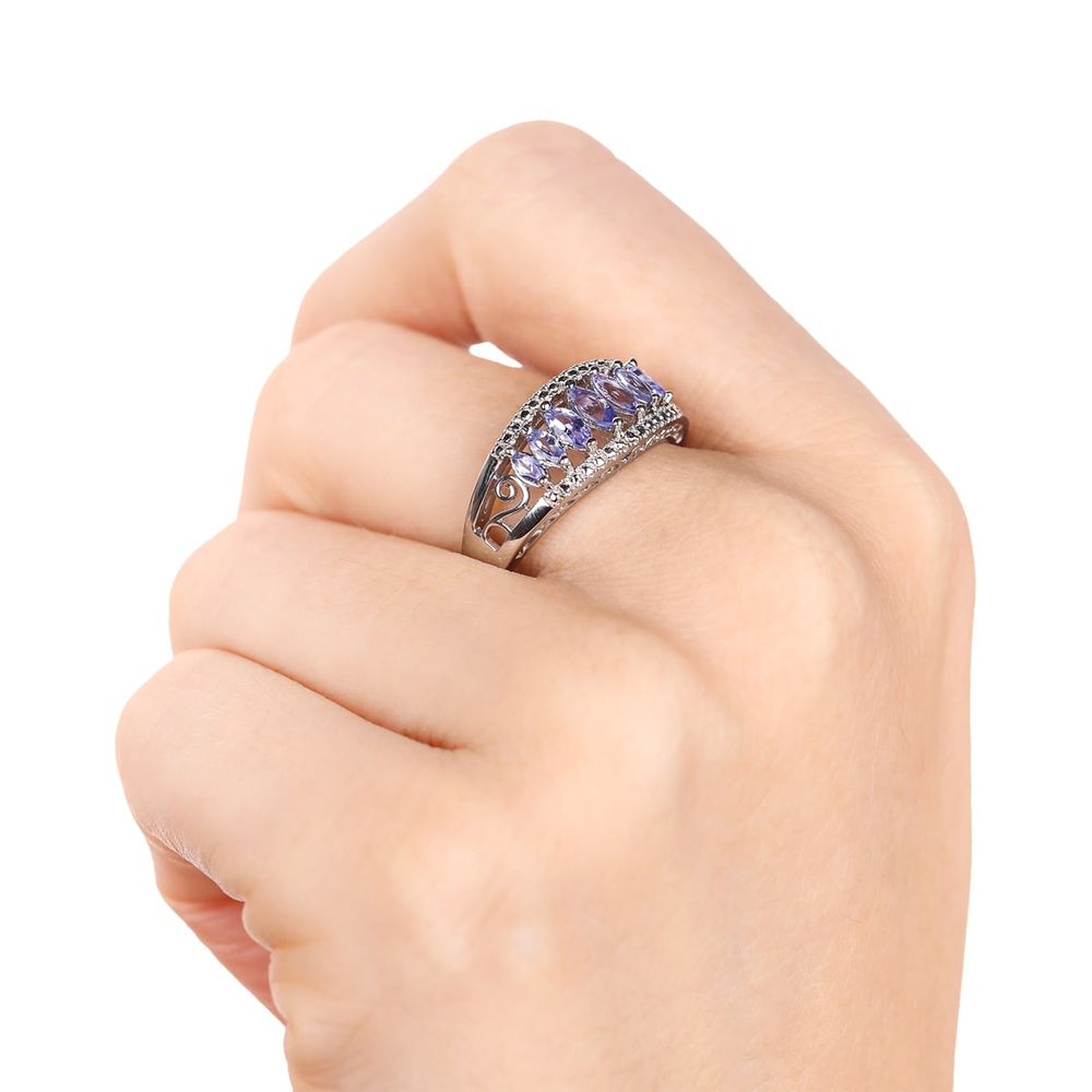 Anel em Prata 925 com 7 Tanzanitas Navetes