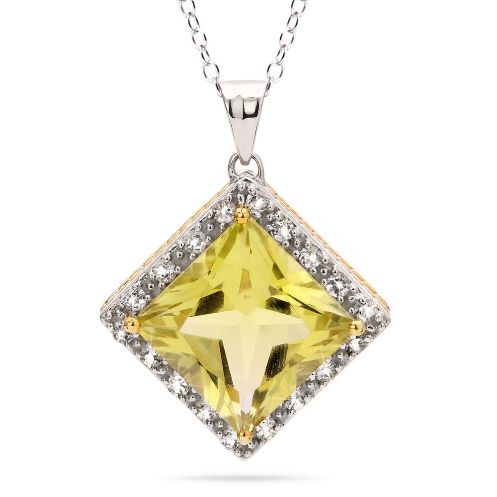 Pingente em Prata 925 com Ammolite Retangular e Topazios Brancos Aprox. 4,75 cts