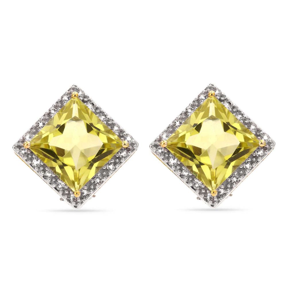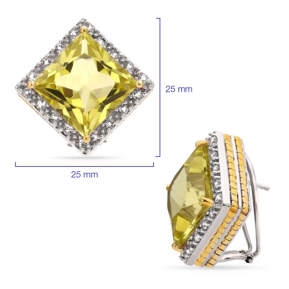 Par de Brinco em Prata 925 com Quartzo Limão e Topázios Brancos - medalhaopersa