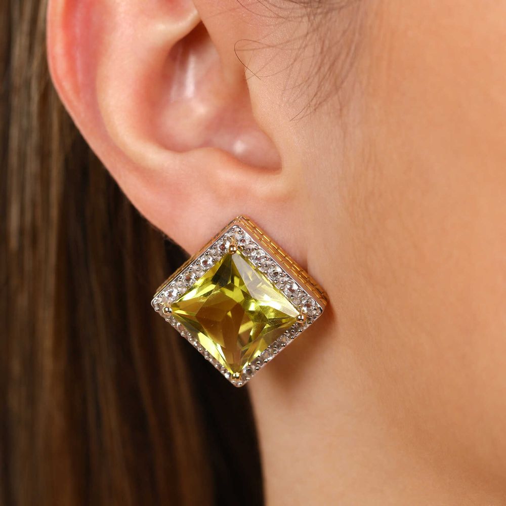 Par de Brinco em Prata 925 com Quartzo Limão e Topázios Brancos - 119927