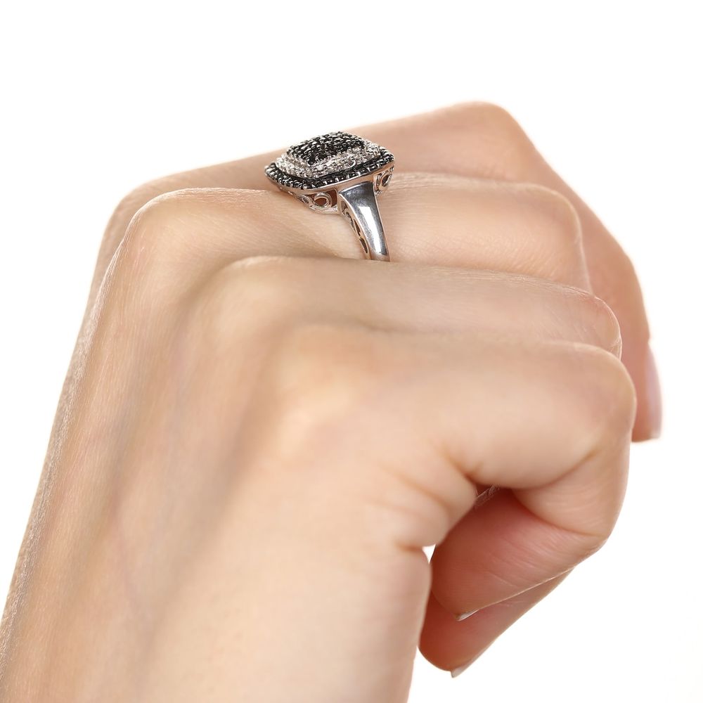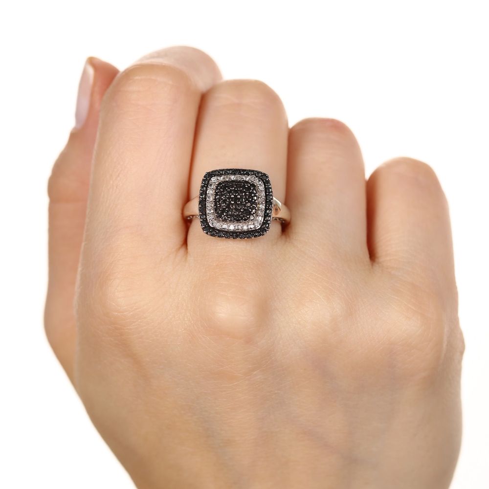 Para arrasar no look, escolha este anel deslumbrante: com diamantes brancos e negros da linha prata !