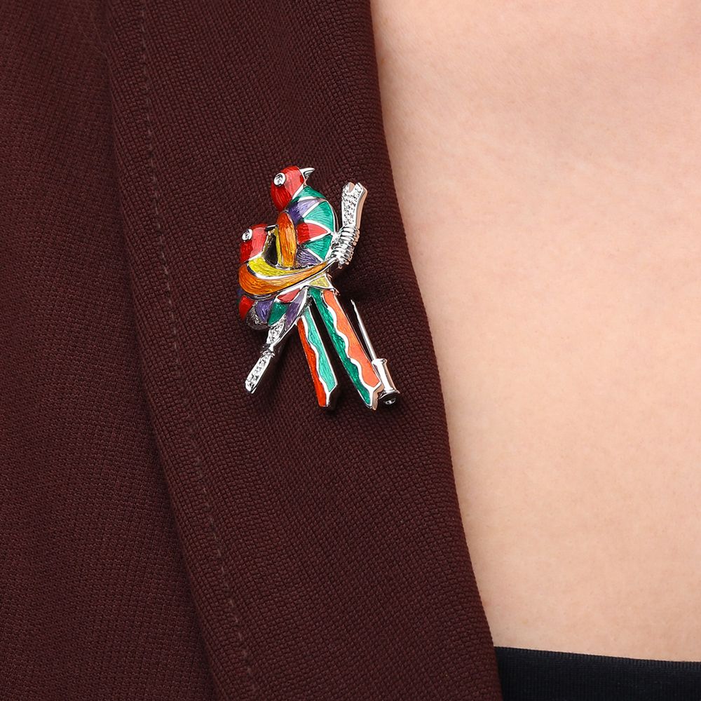 Este broche/pingente de pássaros esmaltados é uma joia encantadora que combina arte, cor e sofisticação.