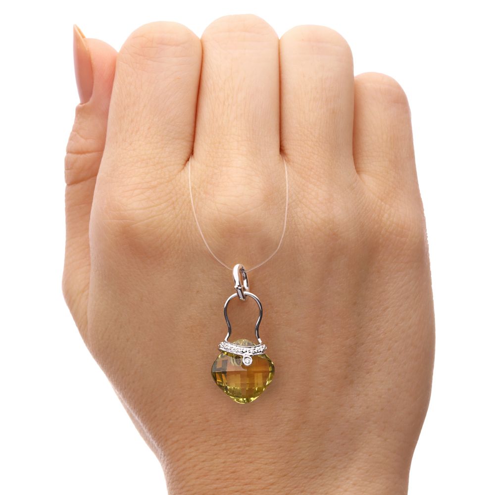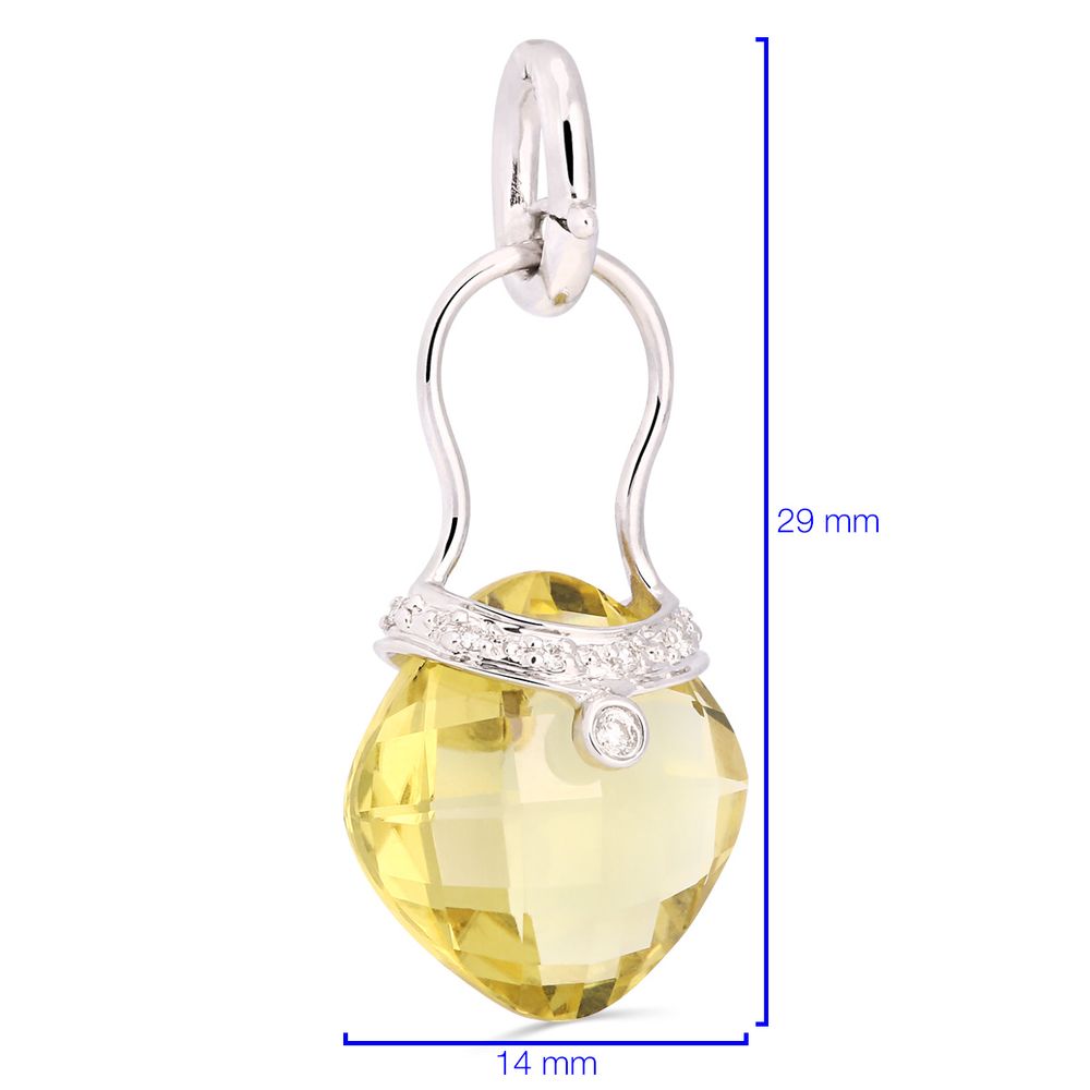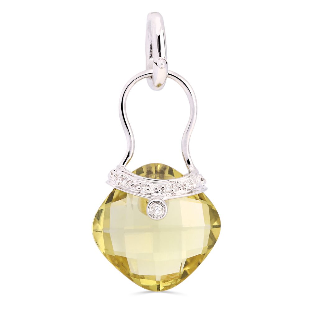 Pingente em Ouro Branco 18k com Quartzo Limão e Diamantes