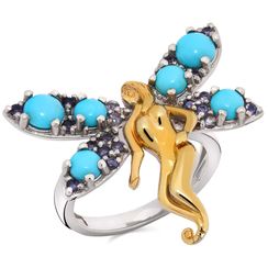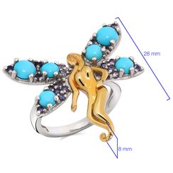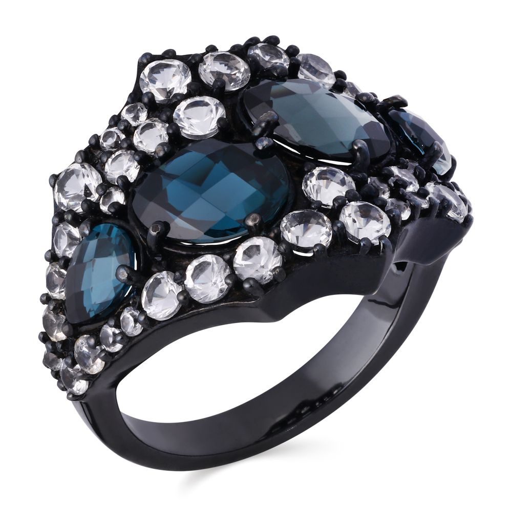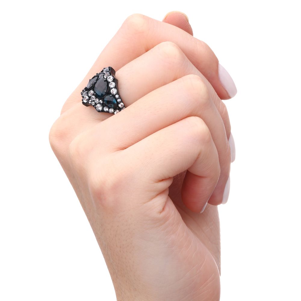 Anel em Prata 925 com Topázio Azul e Topázios Brancos