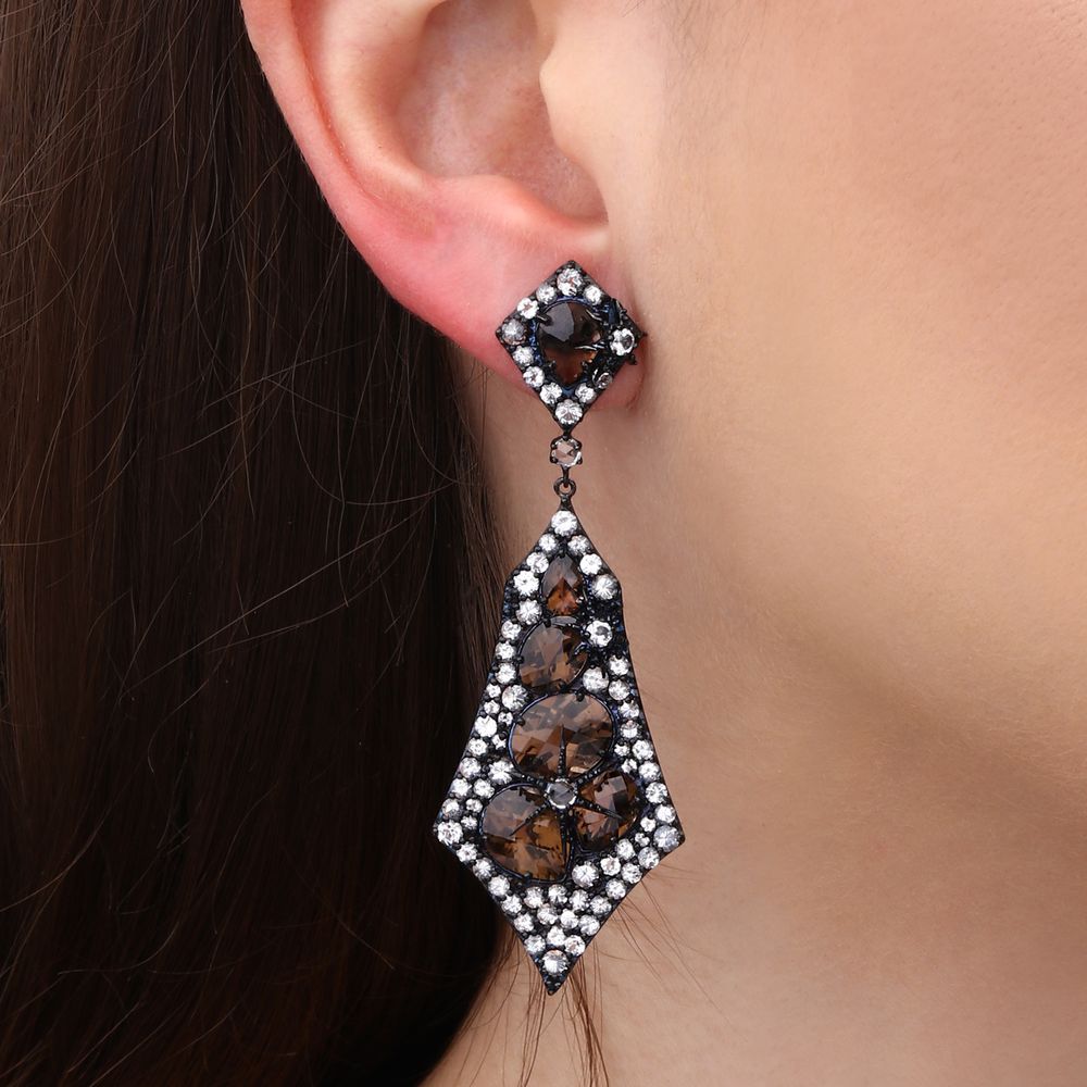 O Par de Brincos Setara com Topázio Fumê e Topázio Branco, totalizando 7,04 ct, é uma joia de elegância ousada e refinamento natural. O tom terroso e profundo do topázio fumê transmite força, equilíbrio e sofisticação discreta. Já os topázios brancos trazem um brilho suave que contrasta com leveza e harmonia.