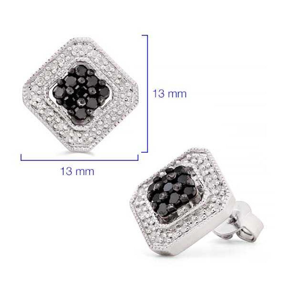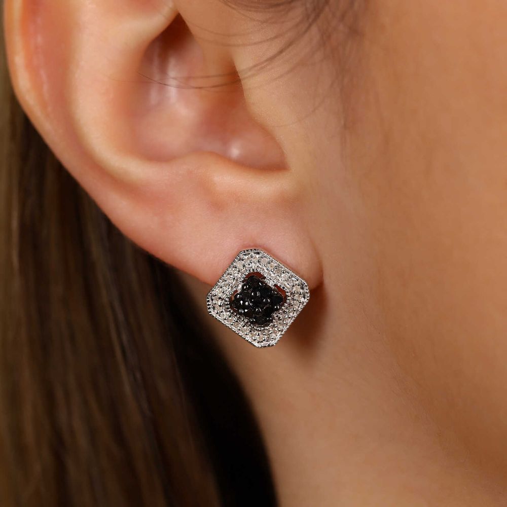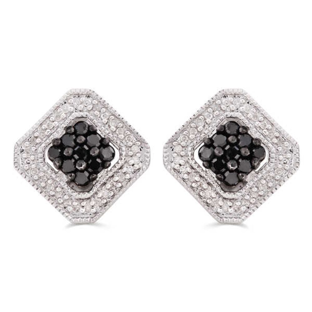 Par de Brinco de Prata Losango de Diamantes Negros e Brancos