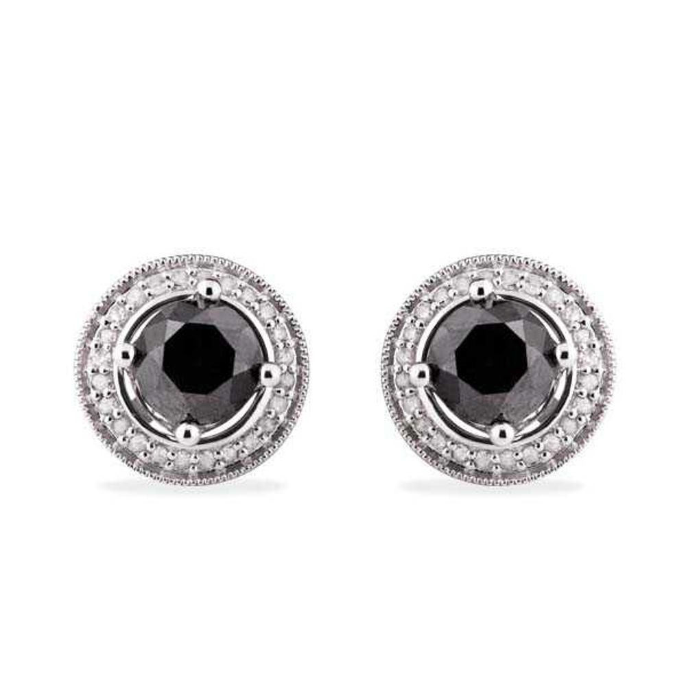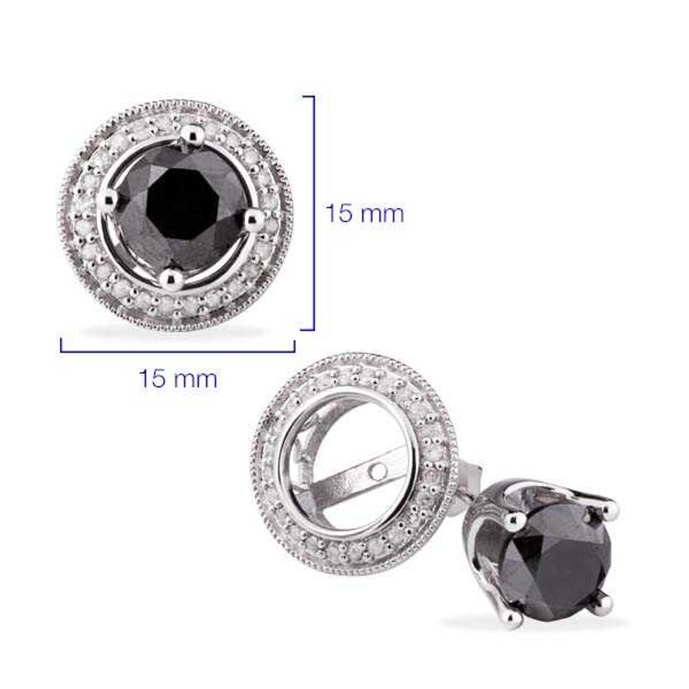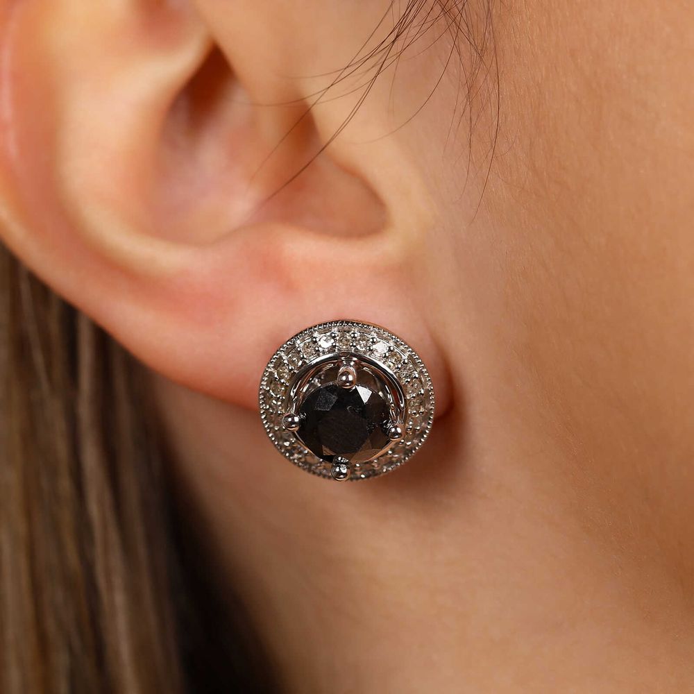 Par de Brinco de Prata com Diamantes Brancos e Negros