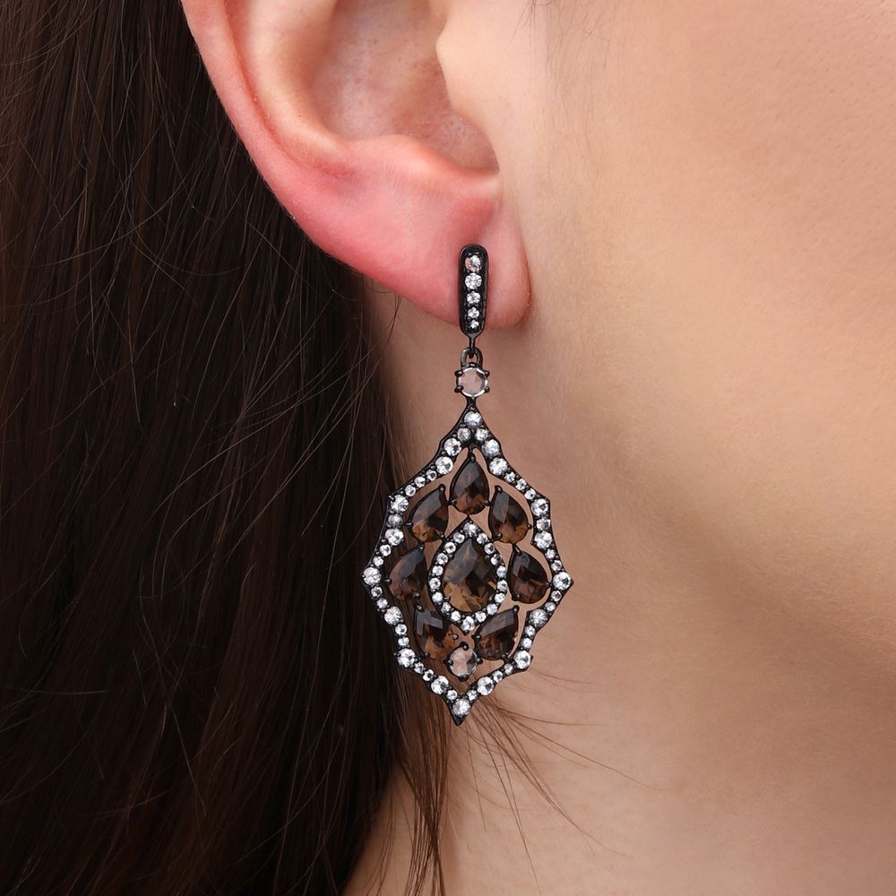O Par de Brincos Setara com Topázios Smoky e Topázios Brancos é uma joia envolvente e elegante, que mistura profundidade e luminosidade em um design contemporâneo.