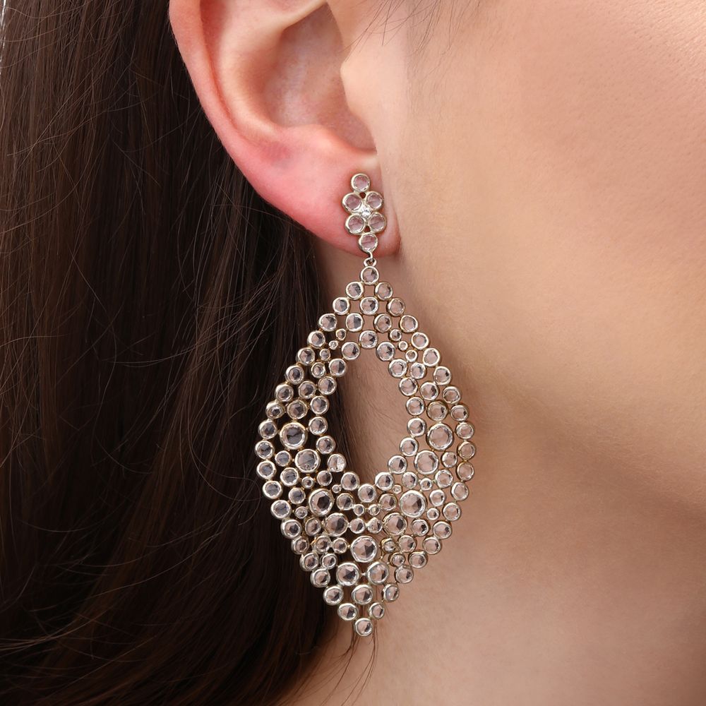 O Par de Brincos Setara com Topázios Brancos totalizando 25,4 cts é sinônimo de presença, luxo e brilho absoluto. Com pedras generosas e lapidadas para maximizar a luz, essa joia transforma qualquer produção em um verdadeiro espetáculo de elegância.