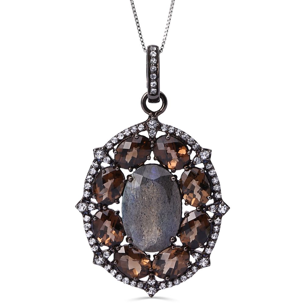 O Pingente Setara com Topázio Fumê e Labradorita é uma joia de presença marcante, que une tons sofisticados em um design harmonioso e elegante.