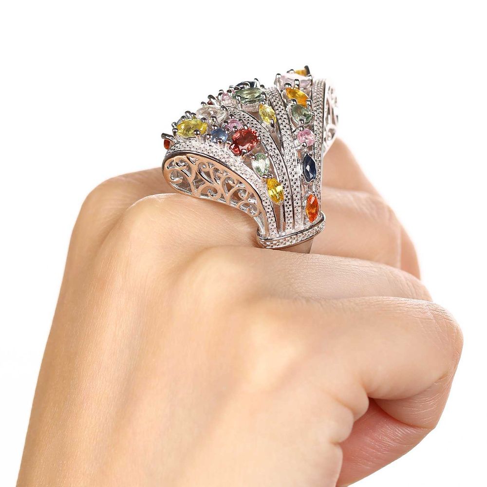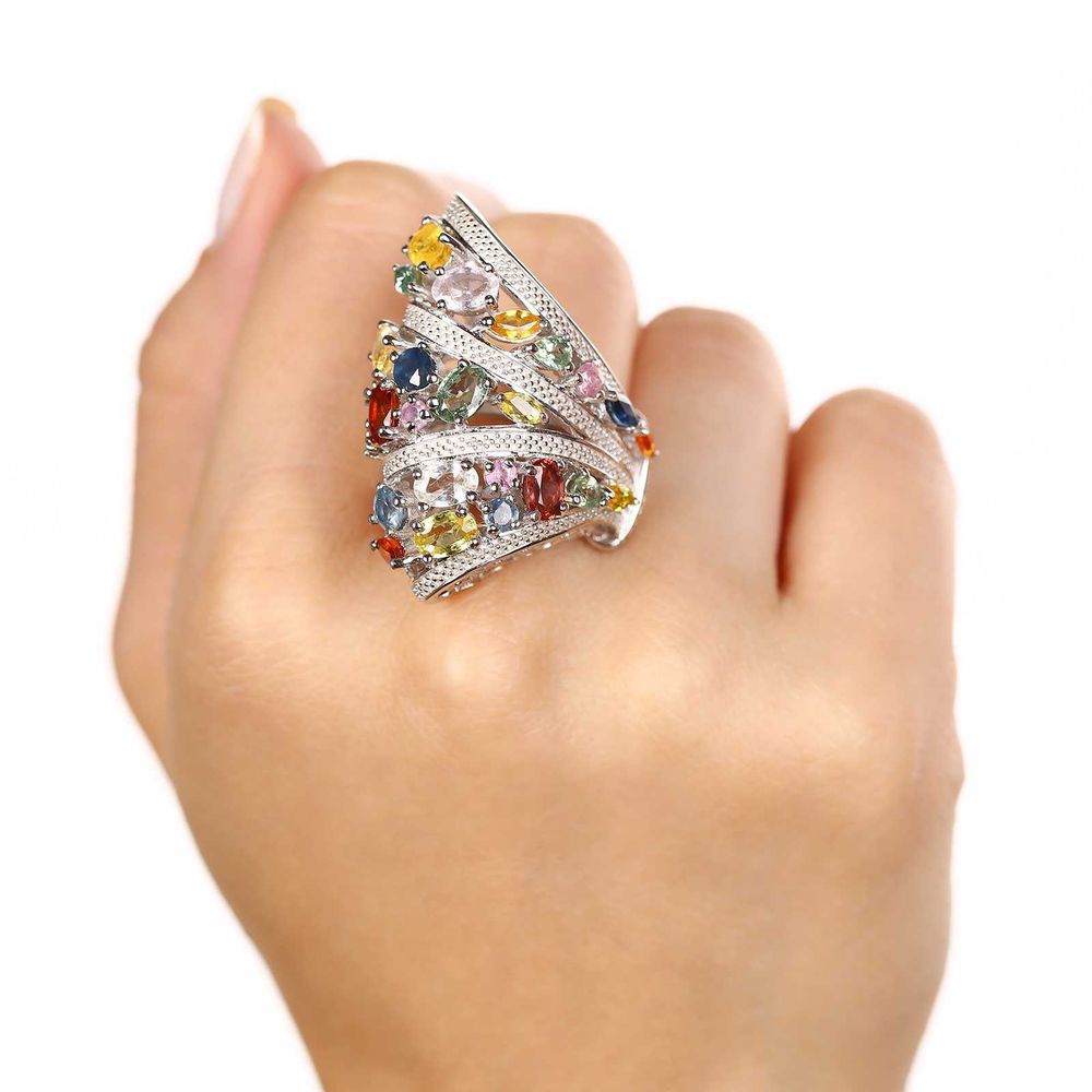 Anel Linha Premium em Prata 925 com Topazio Rosa e Zirconias