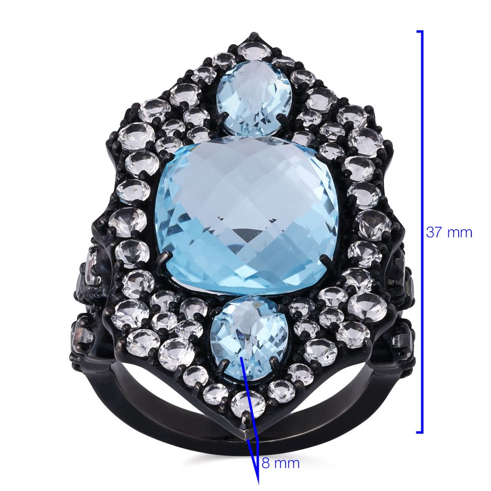 Anel em Prata 925 com Topázio Azul e Topázios Brancos