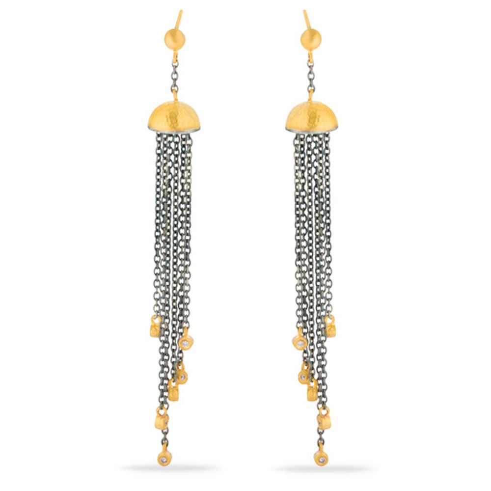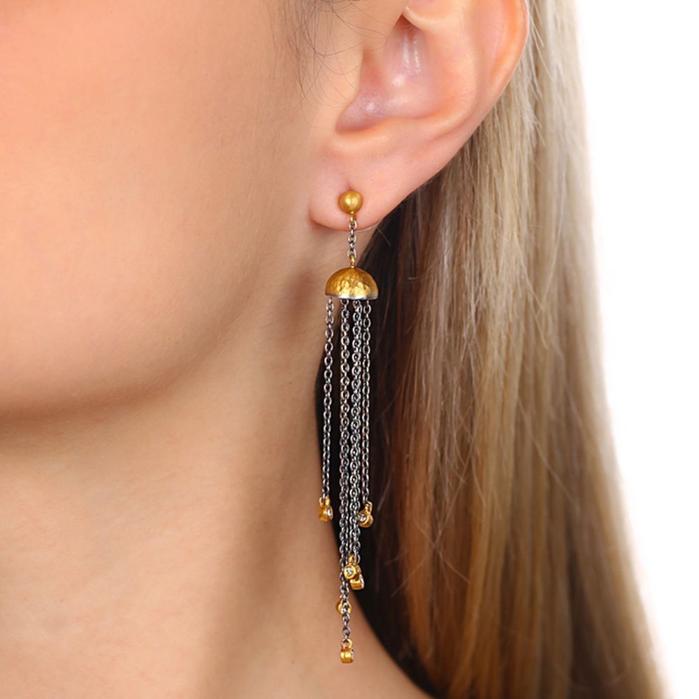 Par de Brinco de Ouro Kurtulan Turco Correntinhas e Diamantes