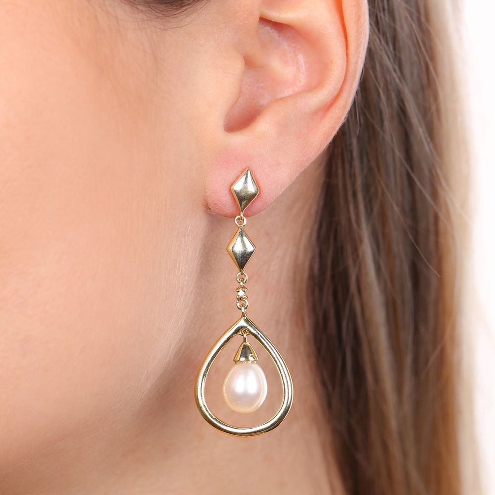 Conjunto em Ouro 18k com Pérolas Bivas Brancas e Furta-Cor