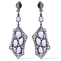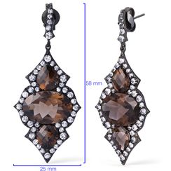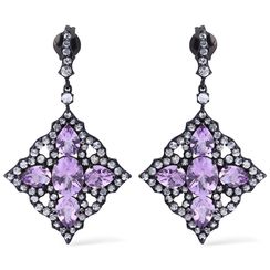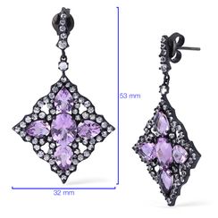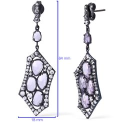 Par de Brinco em Prata Luxo Setara com Ametistas e Topázios Brancos