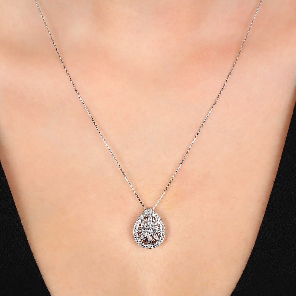 Pingente em Prata 925 Crisocola Cabuchon e Diamantes