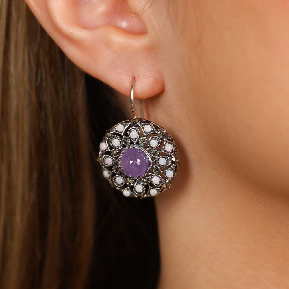 Este par de brinco é aquele "algo a mais" da produção. Em prata decorada, com efeitos vazados e as mais delicadas gemas para torná-lo ainda mais interessante.