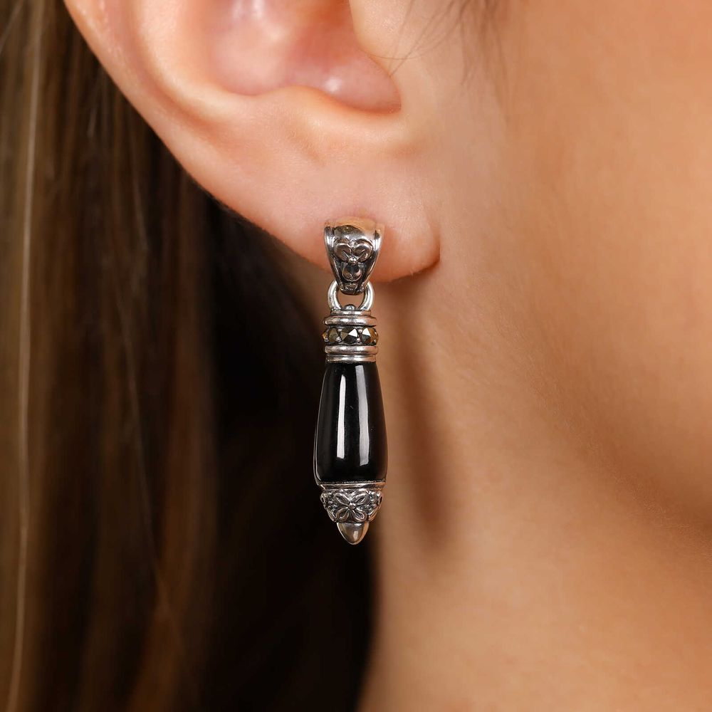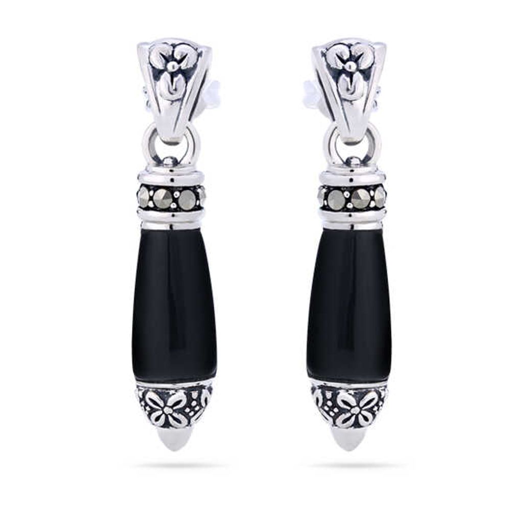 Par de Brinco de Prata Ônix com Marcassitas