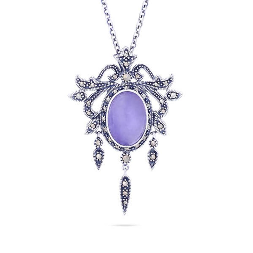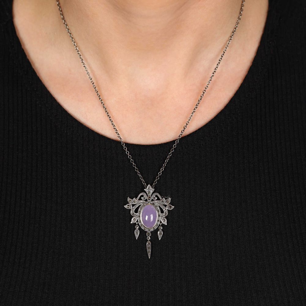 Pingente de Prata Chandelier Jade Lilás e Marcassitas