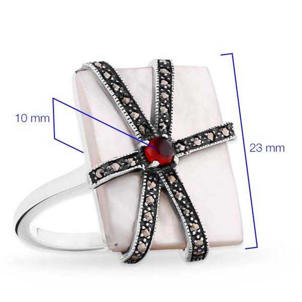 Anel de Prata com Madre Pérola, Marcassitas e Granada
