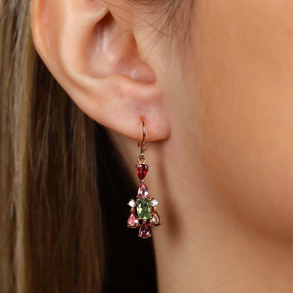 Par de brinco em Prata com Turmalinas Coloridas e Zircônias