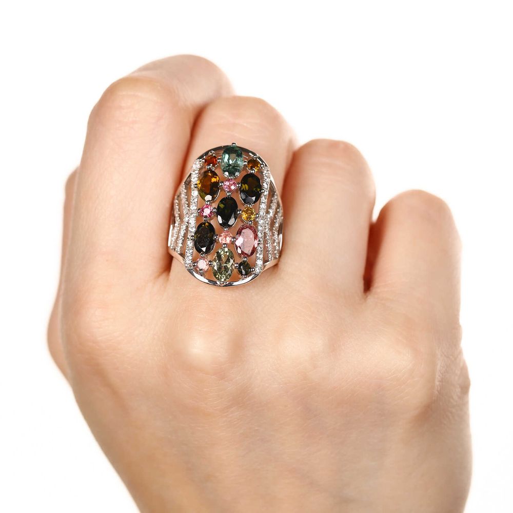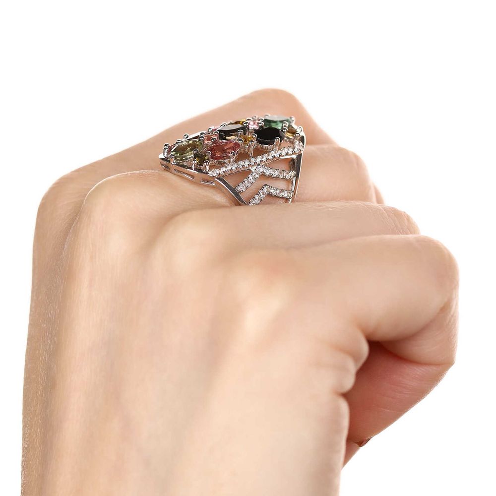 Anel em Prata 925 com Diamantes Chocolates