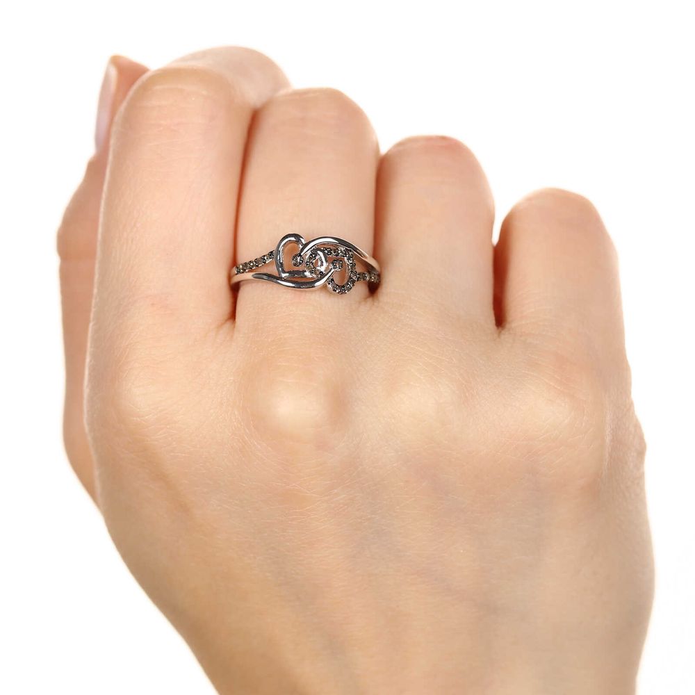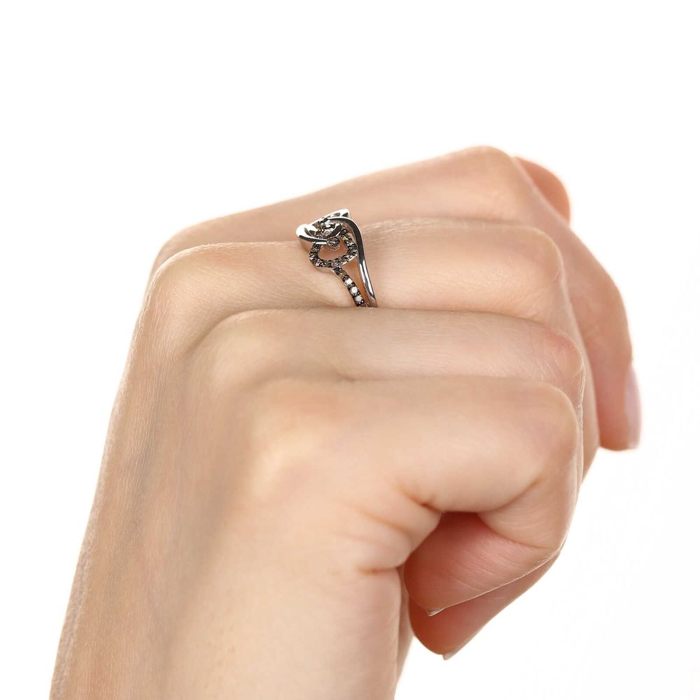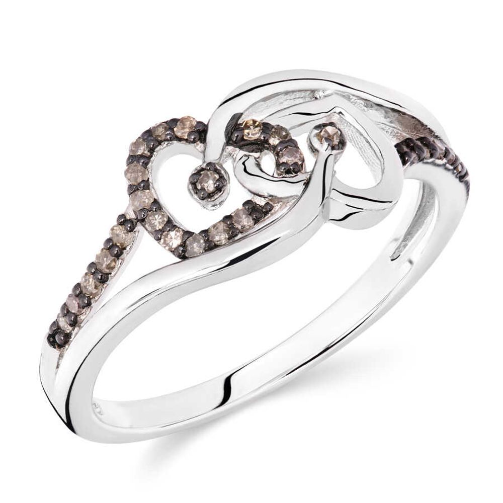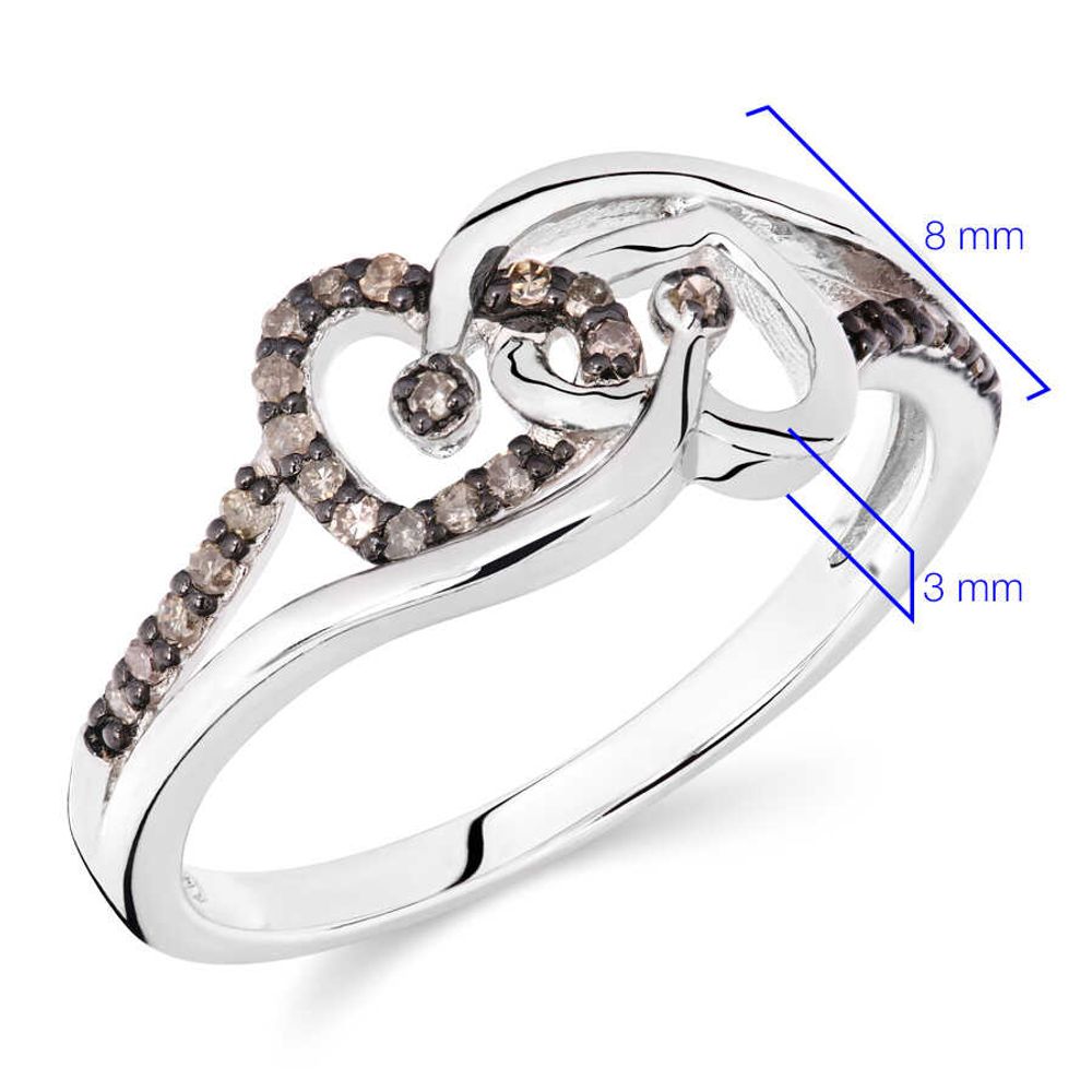 Anel em Prata 925 Corações Entrelaçados com Diamantes Champagnes 143415 |