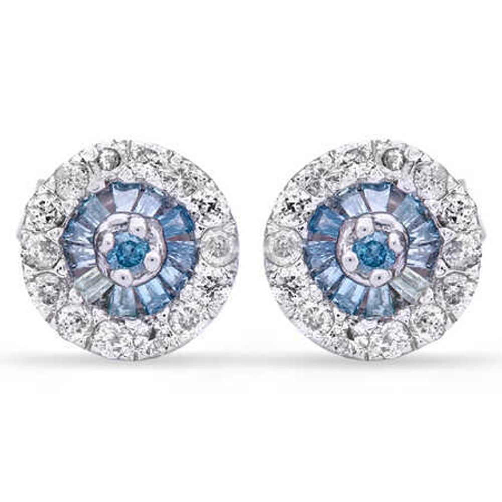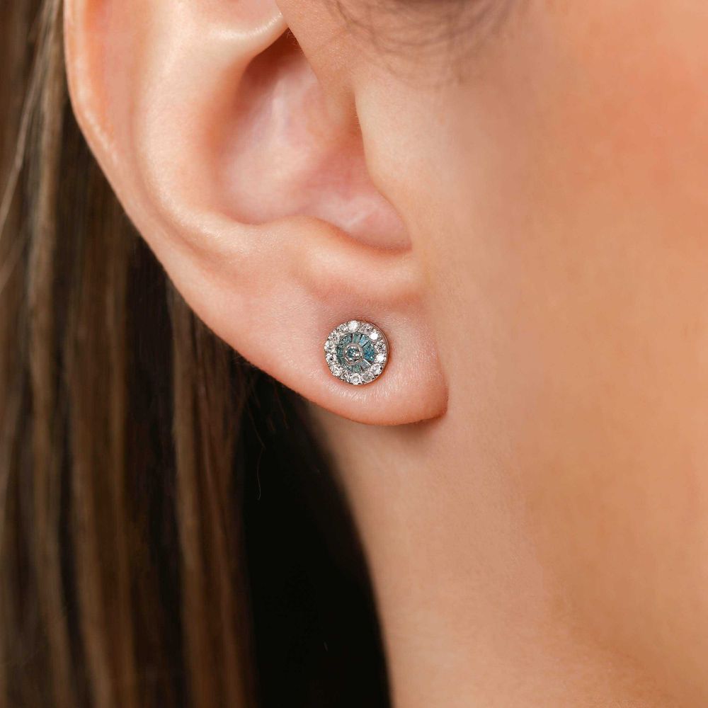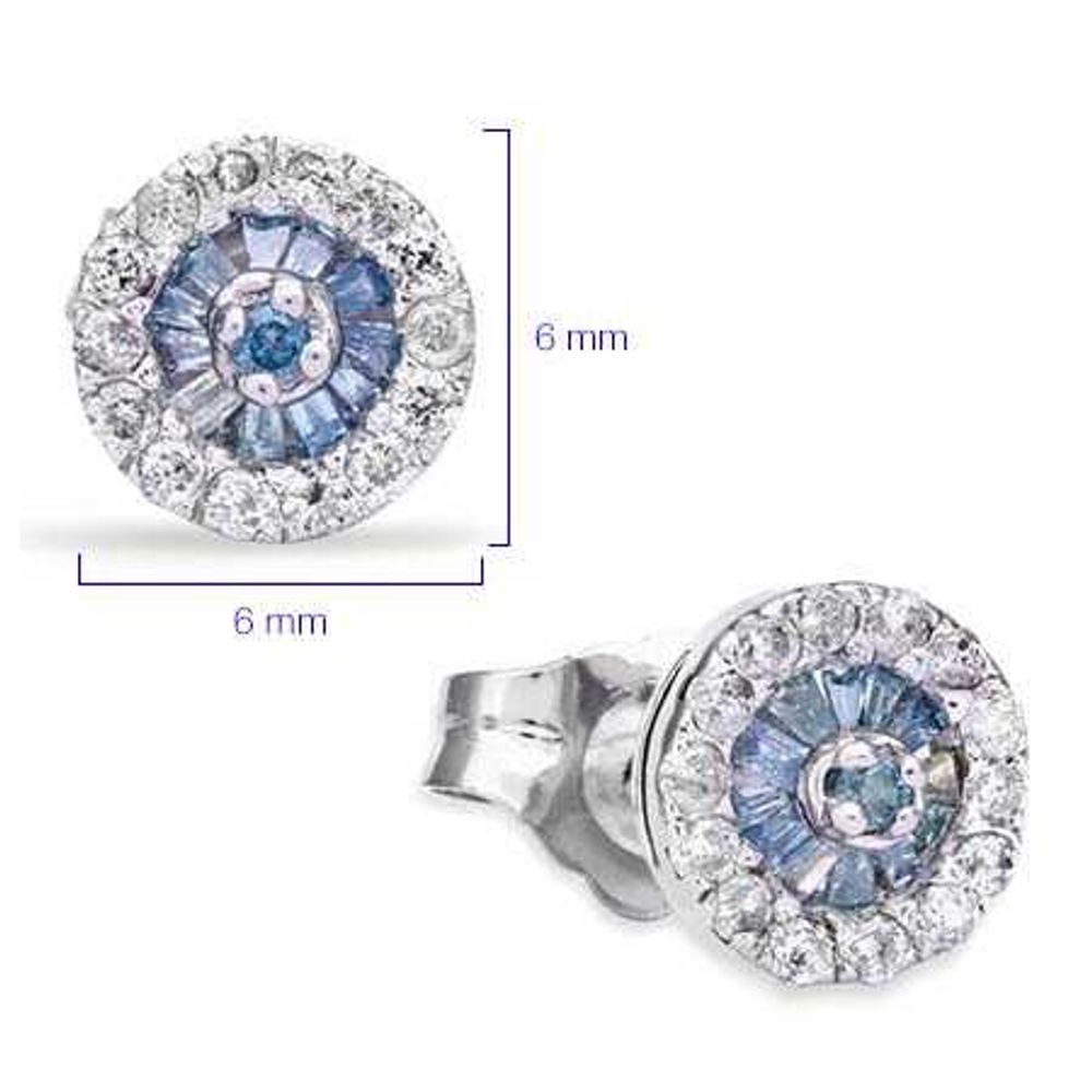 Par de Brincos de Prata com Diamantes Azuis