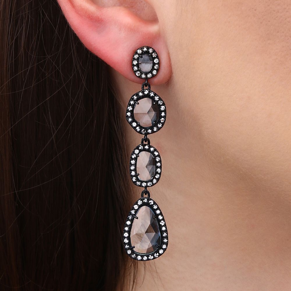 O banho em ródio negro reforça o contraste entre as pedras, trazendo um toque moderno e sofisticado à peça. Ideal para mulheres que buscam elegância com personalidade, esse brinco transforma qualquer look com charme e estilo.
