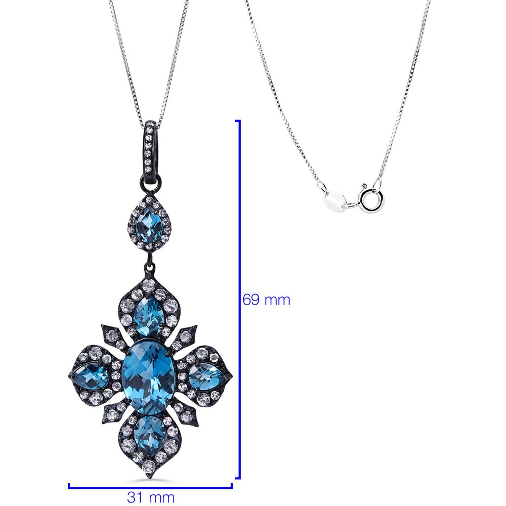 O Pingente Setara com Topázios Azuis e Topázios Brancos é uma joia de presença marcante e sofisticação única. Os topázios azuis, com seu tom sereno e profundo, evocam calma, clareza e confiança, enquanto os topázios brancos acrescentam um brilho leve e elegante ao conjunto.