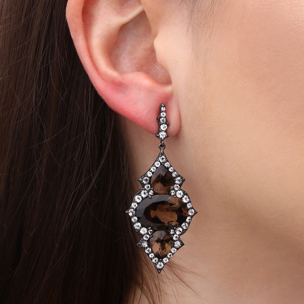 O Par de Brincos Setara com Topázio Fumê e Topázio Branco é uma joia de presença marcante, que une tons sofisticados em um design harmonioso e elegante.