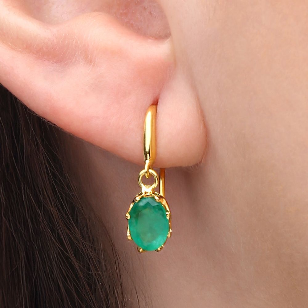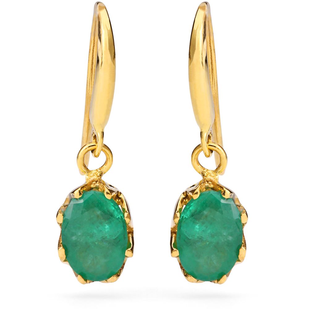 Este par de brincos delicado e sofisticado destaca duas esmeraldas em lapidação oval, totalizando aproximadamente 1,40 cts.