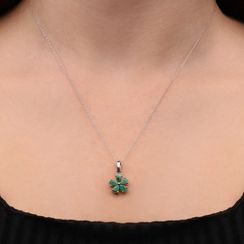 Pingente Flor com Esmeraldas - Aprox. 90 cts - Prata - Corrente 45 cm