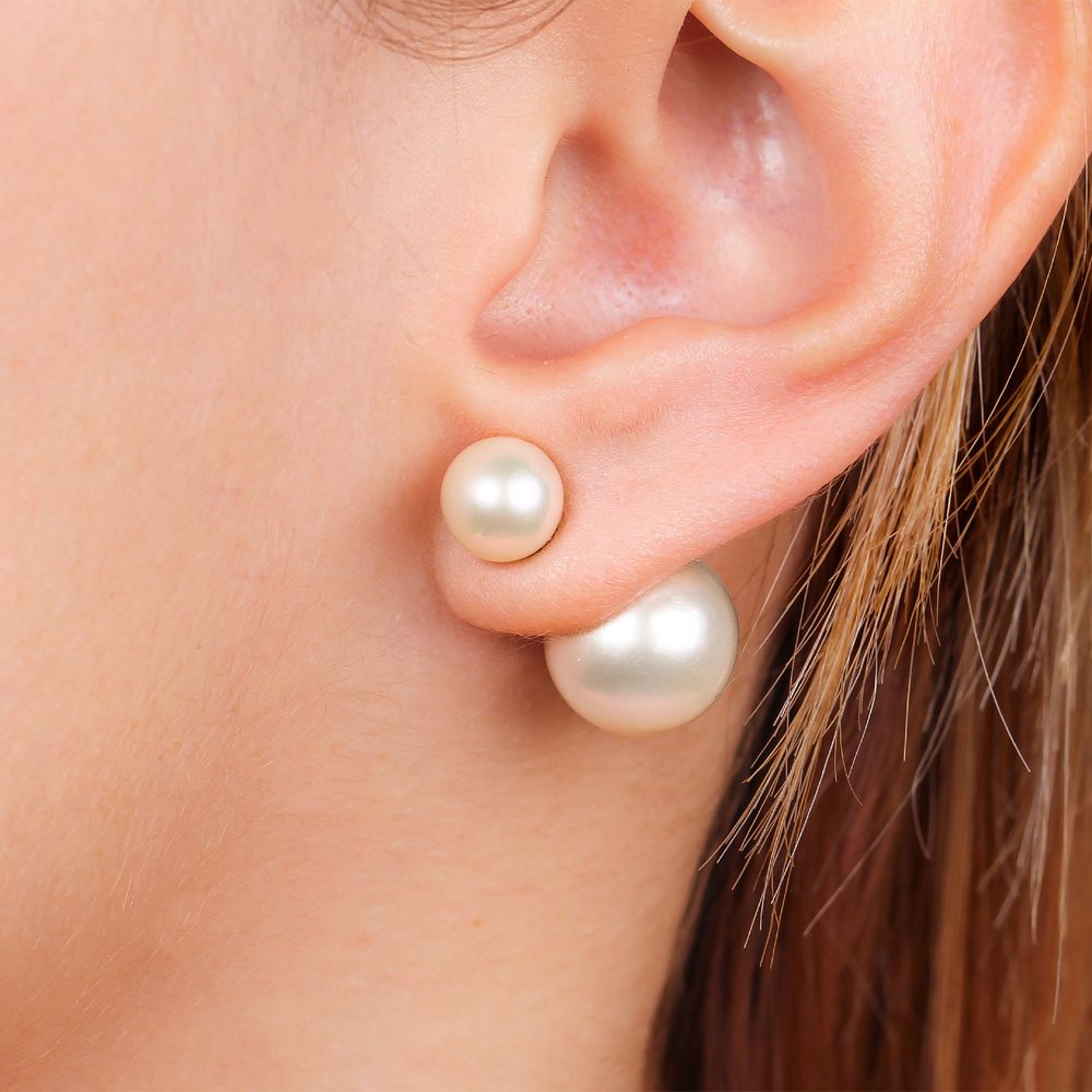 Com pérolas brancas em dois tamanhos, fica elegante com o visual de trabalho ou de festa.