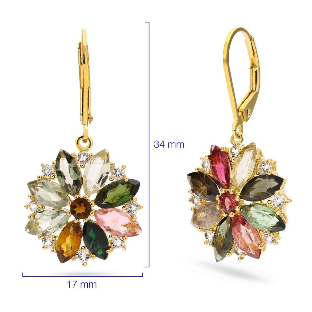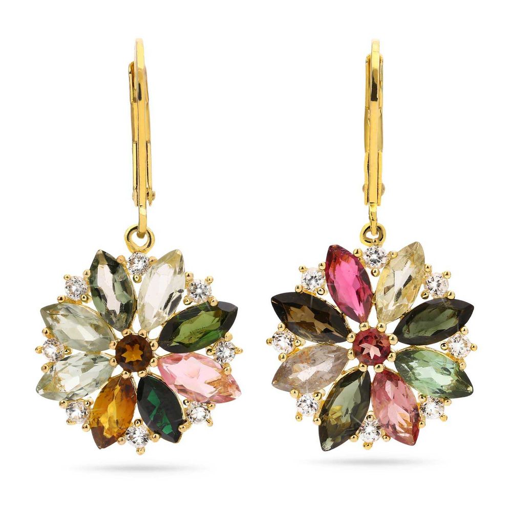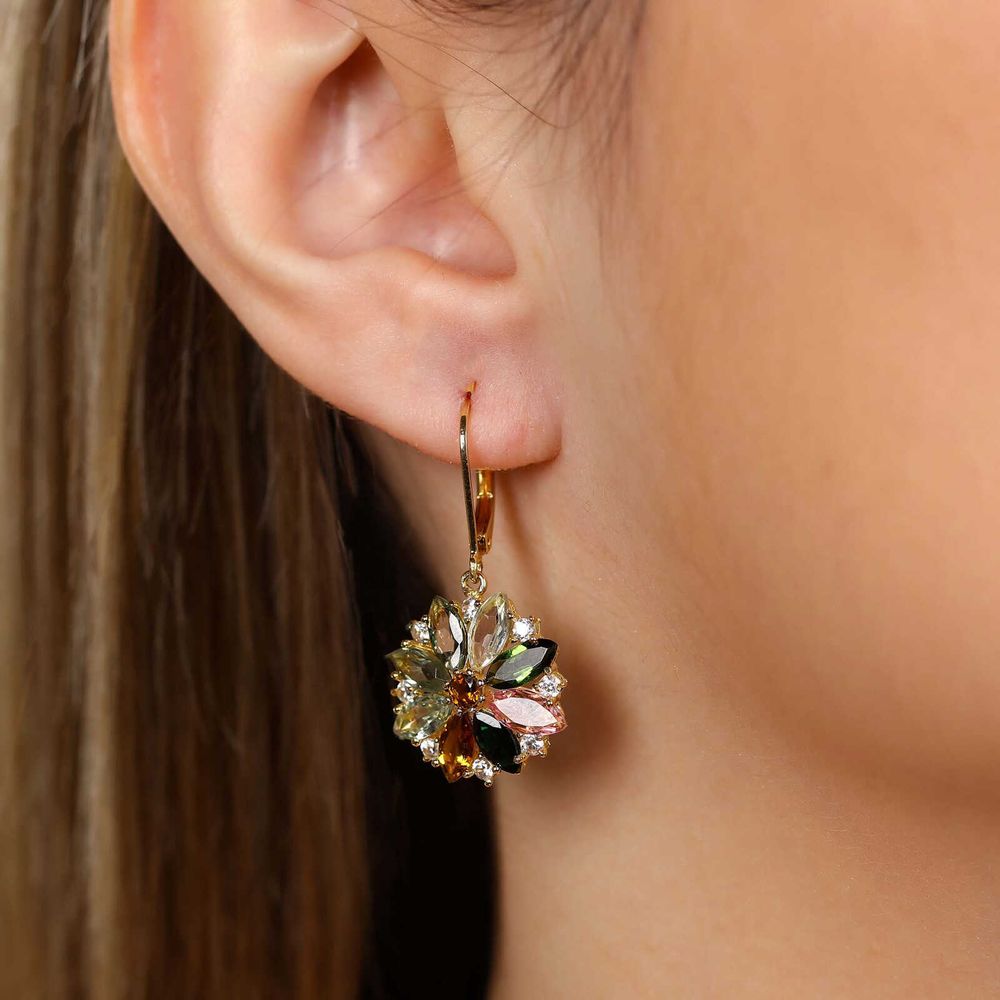 Par de Brinco Floral com Turmalinas Coloridas e Zircônias