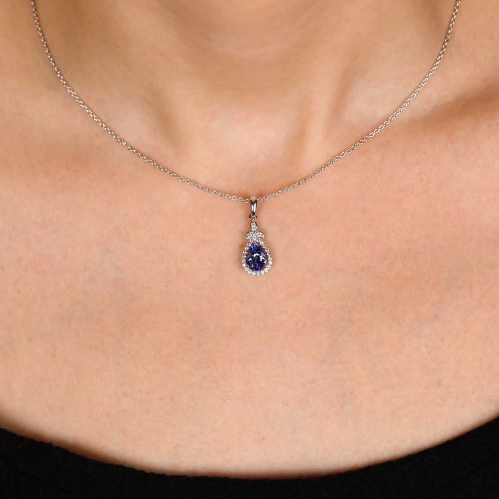 Este pingente em forma de gota, com a rara e vibrante tanzanita acompanhada de delicadas zircônias, transmite sofisticação e elegância.