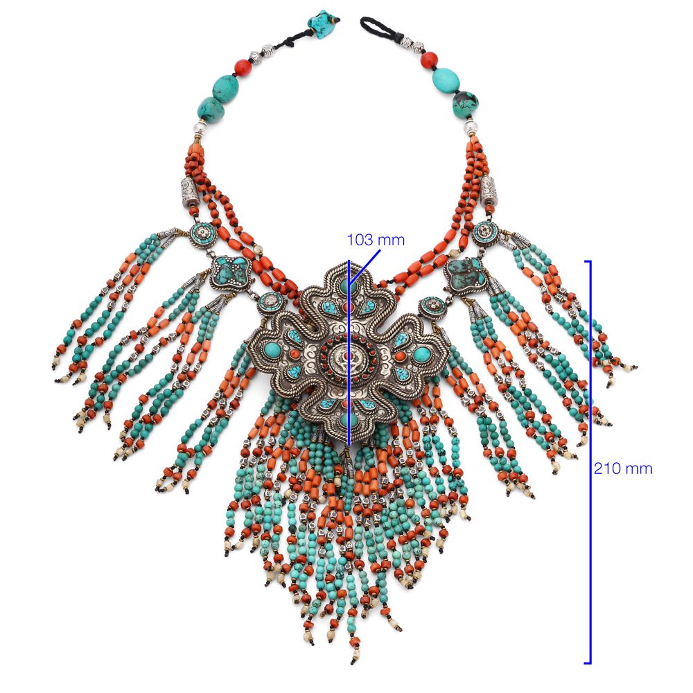 Sua estrutura é feita de liga de metais com pedras preciosas como,turquesa, coral, lápis-lazúl etc...