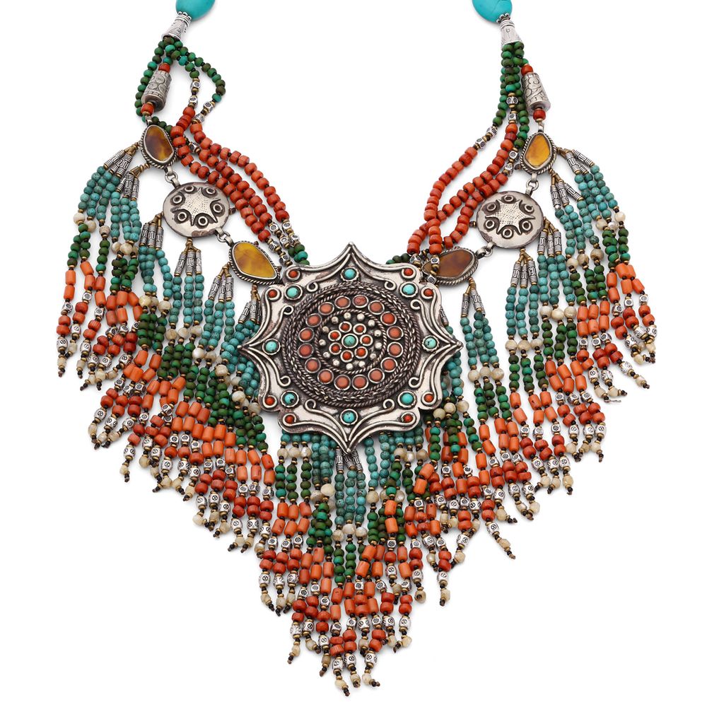 Colar Linha Nepal Com Turquesa, Coral e Lapiz Lazulle