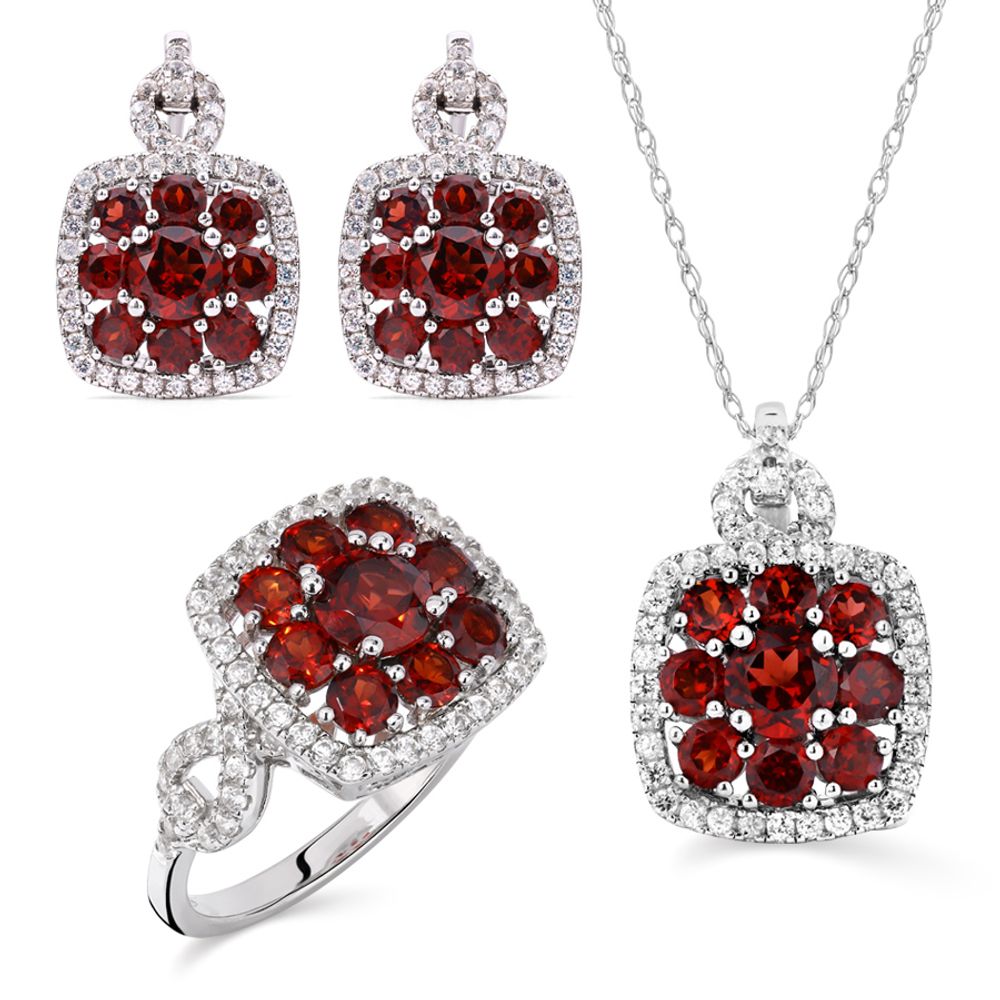 Em pedras: Granada vermelha (7,2 cts) e Zircônias