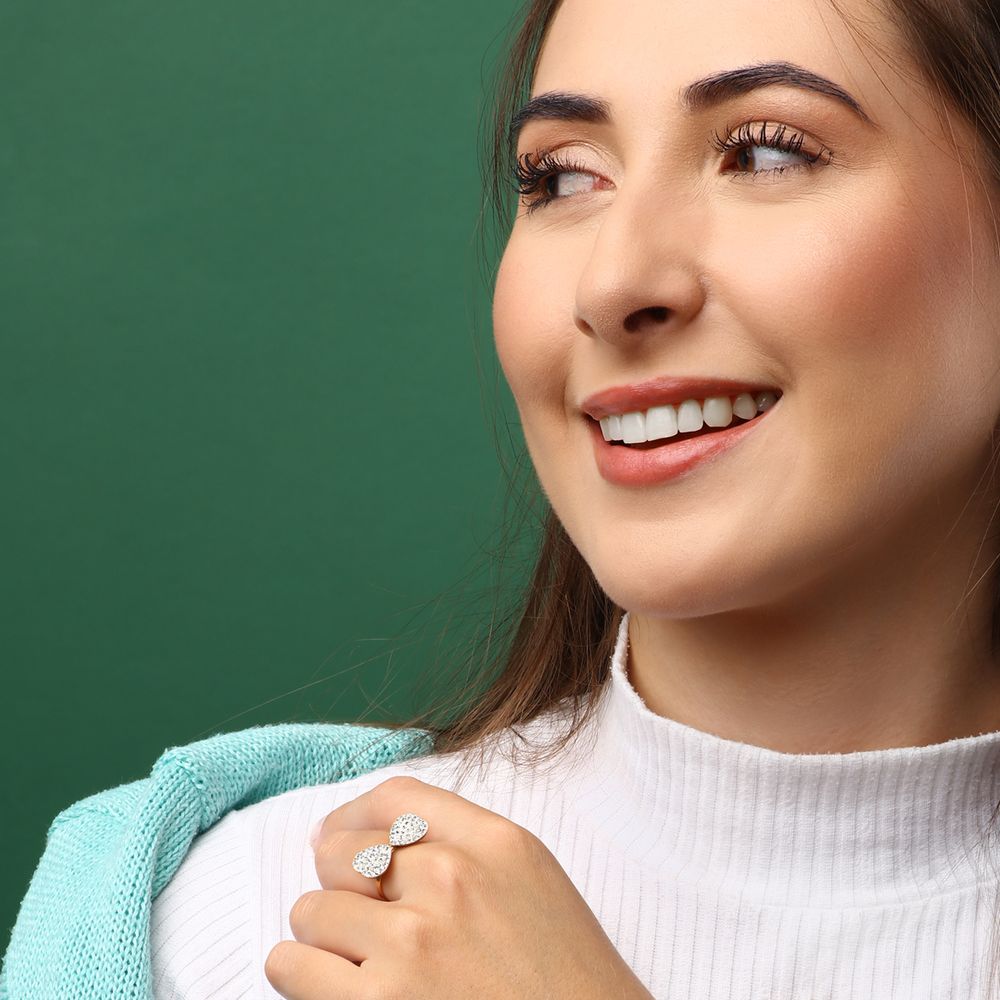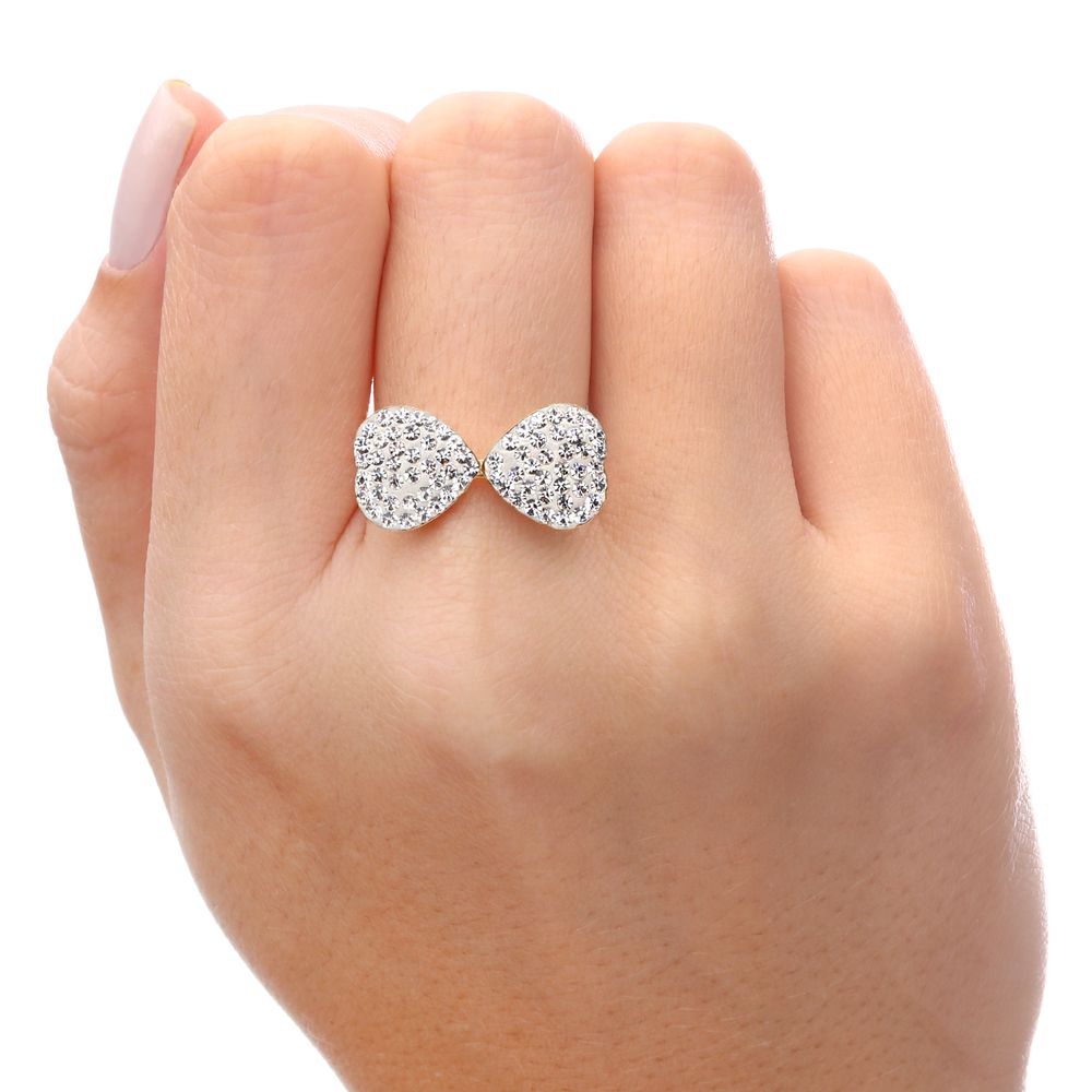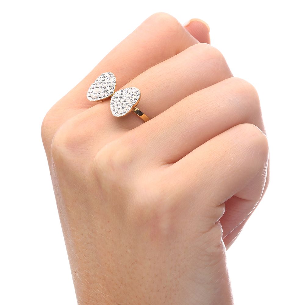 Anel Cristal Sw Corações Ouro Amarelo 18 k